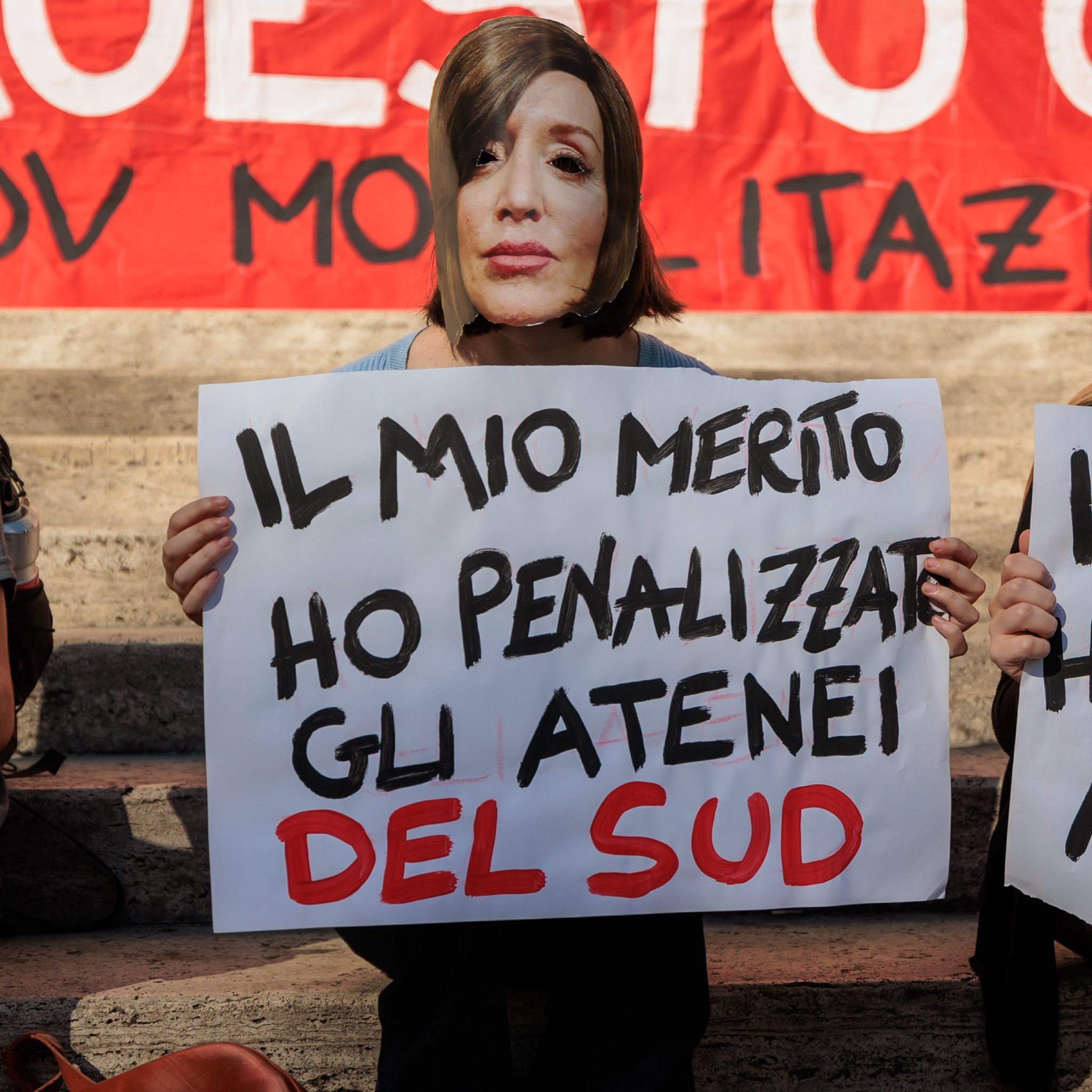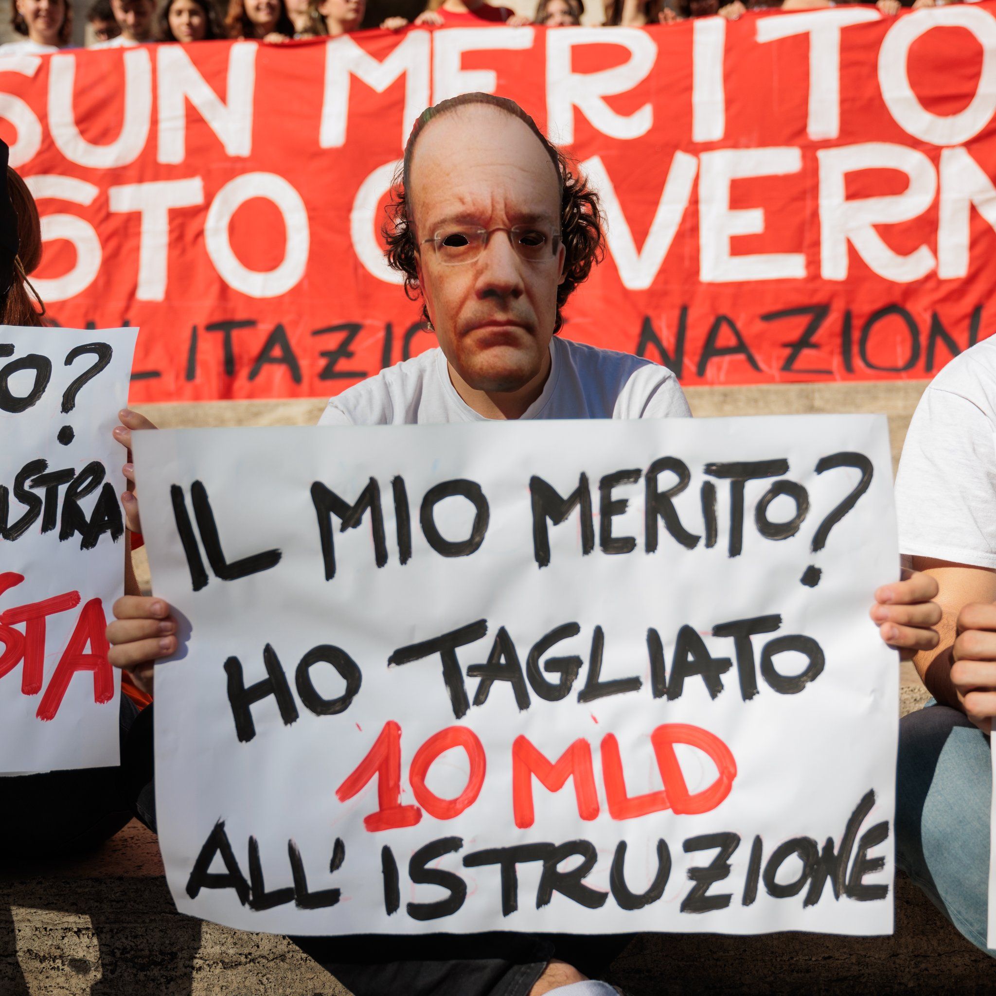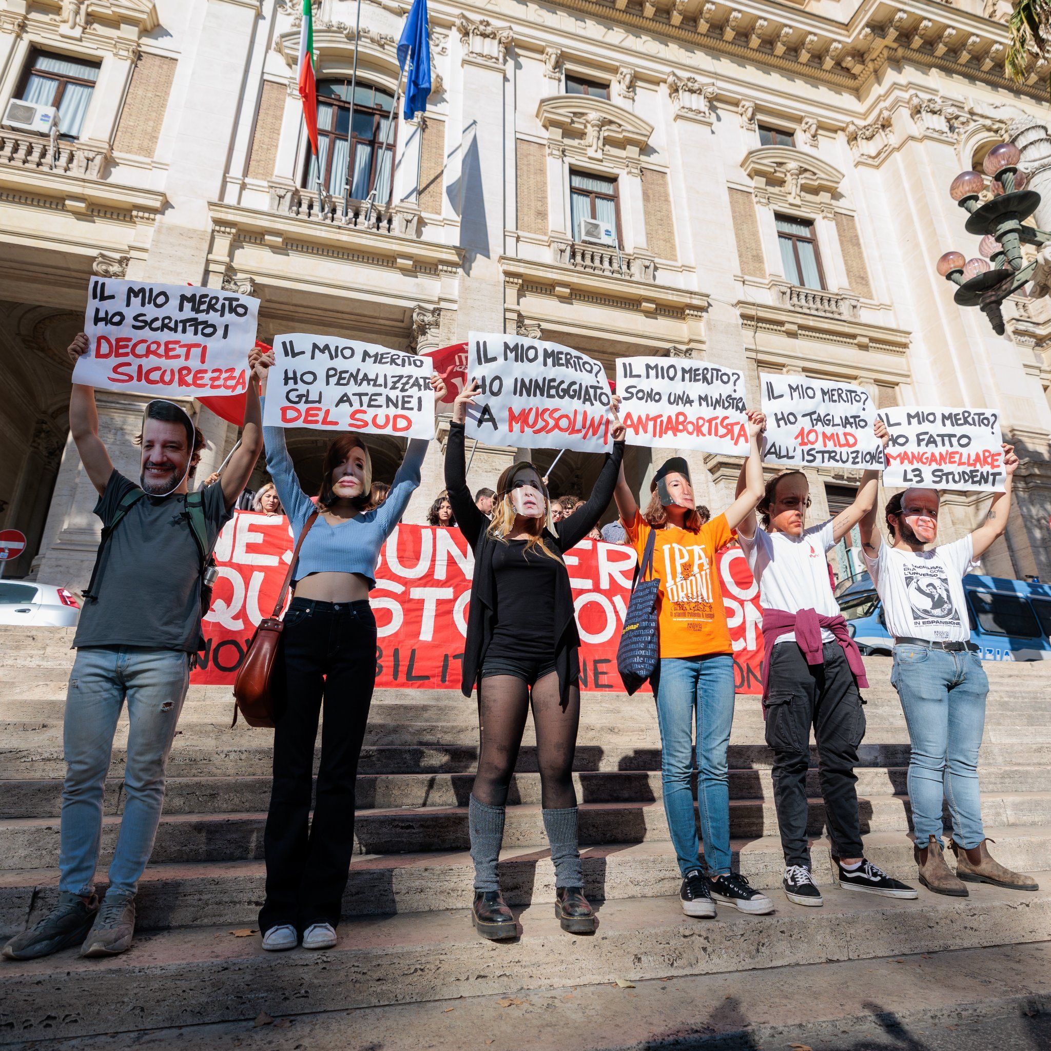 “Lo avevamo detto. Avremmo vigilato sul nuovo Governo e sul nuovo Parlamento. Sulle dichiarazioni, sugli intenti, sulle proposte di legge depositate e sulle azioni”, dichiarano gli studenti. Gli striscioni che espongono sono lapidari. Per ogni ministro c’è la scritta “Il mio merito?” e poi una risposta secca e poco edificante.