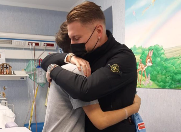 E’ ancora in ospedale Giulio, un ragazzino di 15 anni di Ladispoli, portiere Under 16 dell’A.S.D Città di Cerveteri. Qualche giorno fa sui social era stato pubblicato un appello perché il giovane ha una malattia rara e ha bisogno, per continuare a vivere, di una donazione di midollo osseo. E proprio in ospedale, dove ormai si trova da tempo, oggi è andato a trovarlo Ciro Immobile, calciatore della Lazio che ha dimostrato, insieme a tutta la squadra, grande sensibilità ed empatia. Un abbraccio, quello tra il campione biancoceleste e il campione Giulio che non si arrende, che non ha bisogno di tante parole.