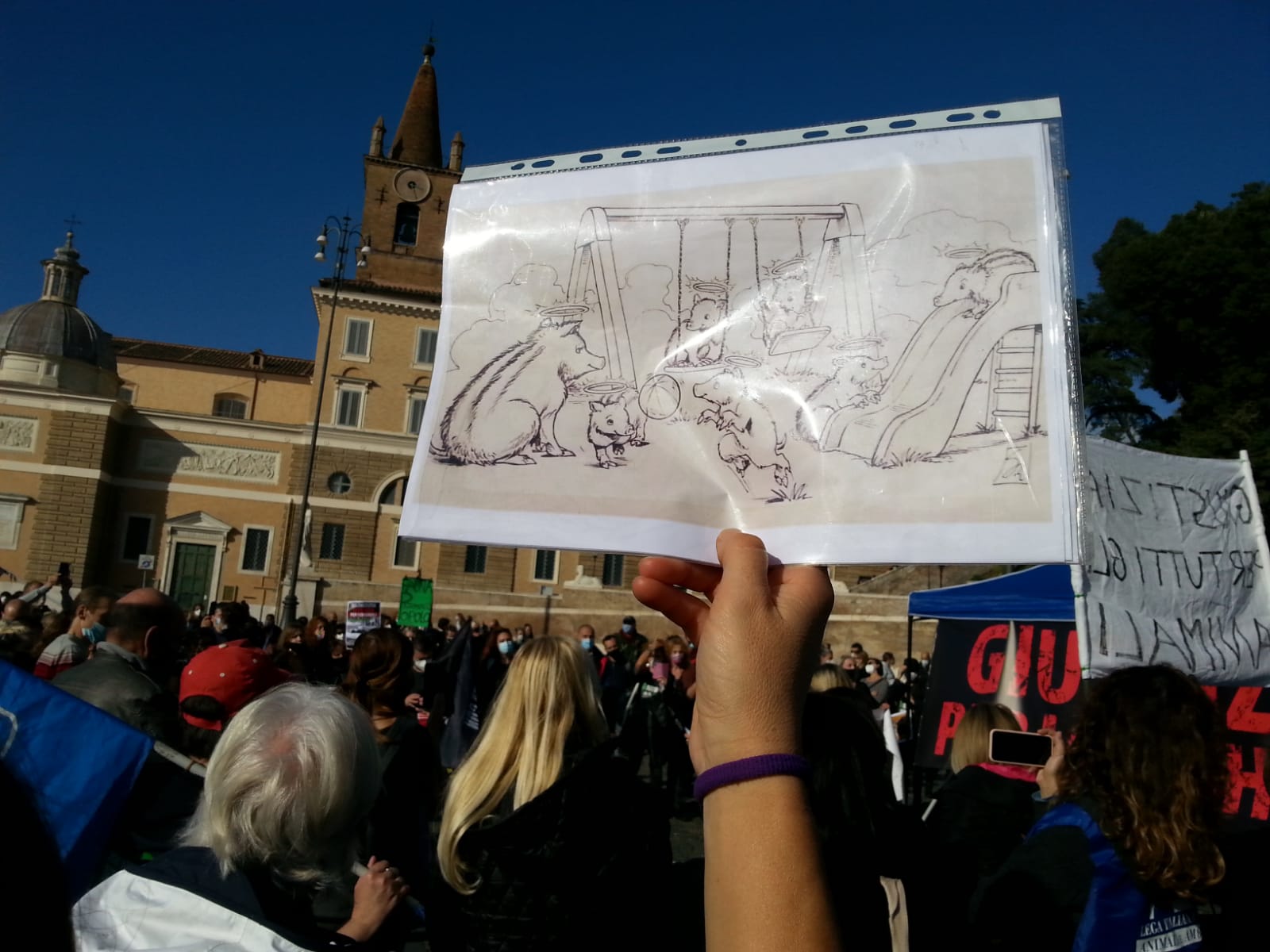 Una piazza del Popolo piena oggi, a distanza di una settimana dall’uccisione di mamma cinghiale e dei suoi cuccioli, per chiedere giustizia e l’immediata sospensione del protocollo “ammazza cinghiali”. Anche l’Ente Nazionale Protezione Animali è sceso in piazza insieme a tantissime altre associazioni animaliste e ambientaliste e ai cittadini che hanno voluto far sentire la propria voce per chiedere tutti insieme, uniti, l’abolizione del Protocollo d’Intesa “ammazza cinghiali” e per richiamare le istituzioni alle proprie responsabilità.