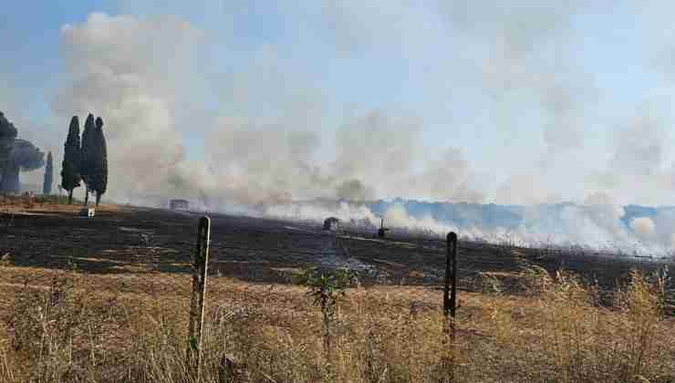 L’incendio tra Castel Romano e Pratica di Mare