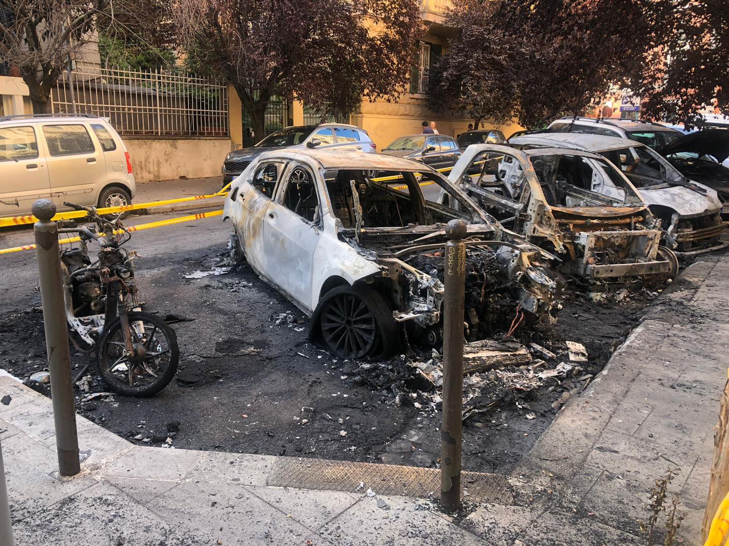 I Vigili del fuoco hanno prontamente spento le fiamme e stilato un resoconto di quanto avvenuto. In totale i mezzi coinvolti sono sei; quattro totalmente bruciati – di cui tre auto ed un motorino – mentre quelle danneggiate sono due. L’incendio è partito da un’auto parcheggiata al civico 15, una smart, che poi si è esteso alle altre vetture. Le cause, secondo quanto riportano i Vigli del Fuoco, sono imprecisate ma la pista più probabile è quella del dolo