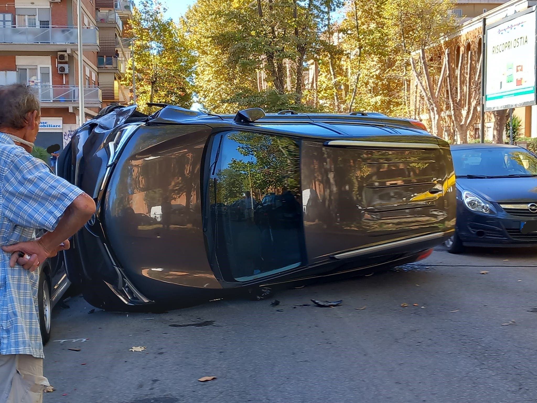 Incidente a Ostia: perde il controllo dell’auto e si ribalta (FOTO)