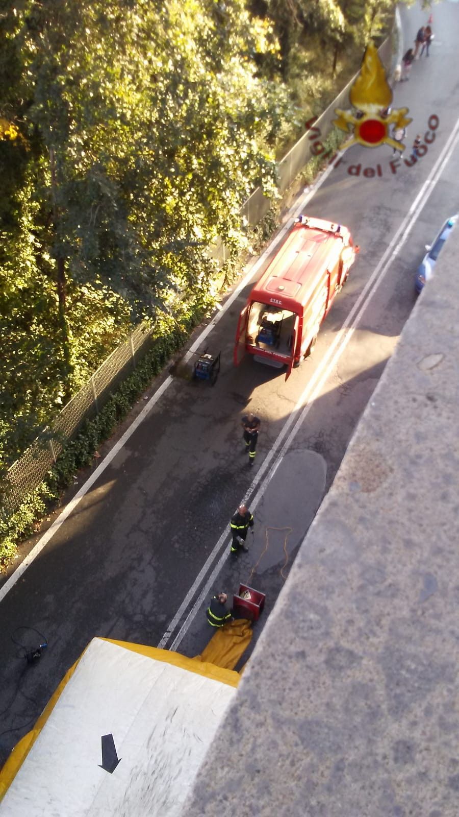 Sul posto sono accorse immediatamente tre squadre dei vigili del fuoco del comando di Roma, con il supporto di autoscala e carro teli.