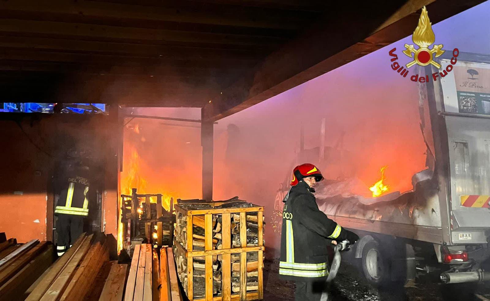 Le fiamme si sono sviluppate all’esterno di dell’attività commerciale, a ridosso di alcune abitazioni. A bruciare materiale legnoso accatastato e un furgone parcheggiato di fianco.