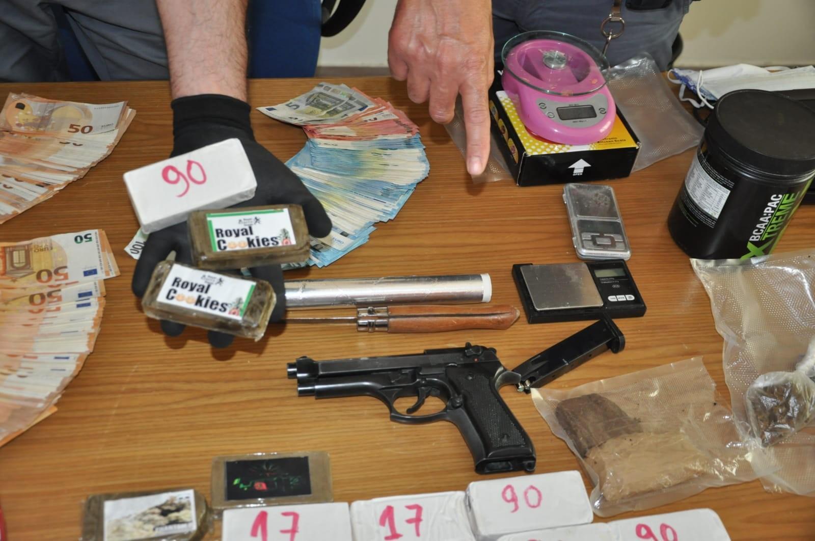 Per tale ragione gli agenti della Polizia di Stato hanno deciso di estendere la perquisizione anche all’attività commerciale dove l’uomo si stava recando a lavoro, (attività gestita dai suoi familiari) e dove, occultata all’interno di un armadietto nello spogliatoio, hanno rinvenuto 3 kg di sostanza stupefacente del tipo “Hashish” accuratamente divisa in confezioni sottovuoto di cellophane, 150 grammi di marijuana e 50 grammi di cocaina. Sempre nello stesso armadietto, all’interno di una grossa sacca, gli agenti della Polizia di Stato hanno scoperto circa 40.000 euro in banconote di diverso taglio, tutto denaro diviso e contenuto nelle stesse buste di cellophane utilizzate per il confezionamento della droga sequestrata.