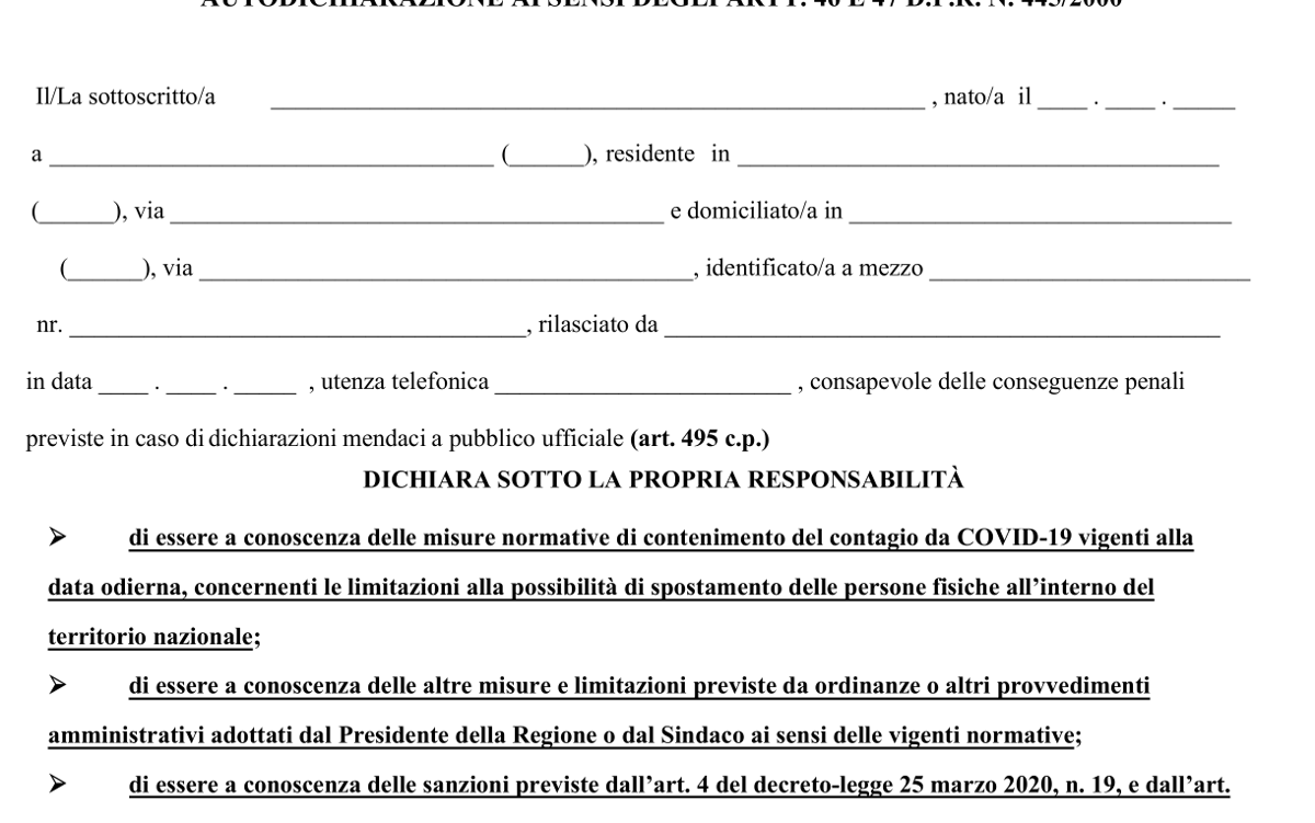 CLICCA QUI PER SCARICARE L’AUTOCERTIFICAZIONE