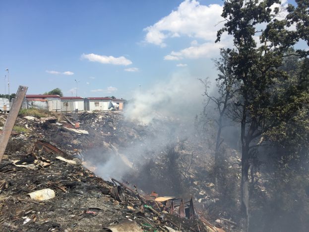 Un anno e mezzo dopo il nostro servizio sul cimitero delle auto rubate, siamo tornati al campo rom di via Pontina, a Castel Romano, dove le da due giorni consecutivi i vigili del fuoco sono impegnati a spegnere incendi di rifiuti di varia natura. Questa volta – memori di quanto accaduto in passato, ovvero dell’aggressione subita per evitare che fossero effettuate le riprese – siamo entrati scortati da polizia e vigili del fuoco. Dentro l’aria è acre, il fumo viene spinto dal leggero vento che continua ad alimentare le fiamme sotto quelli che sembravano focolai già spenti. La “vallata dell’inferno”, rispetto a 19 mesi fa, ha assunto un colore diverso: è molto meno verde. Tanta vegetazione – ricordiamo che questa è una riserva naturale protetta – in questo lasso di tempo è andata distrutta e insieme ad essa carcasse di auto, frigoriferi, pneumatici, mobili vecchi, materassi, reti in metallo, divani, poltrone. E scarti di tutti i tipi.
