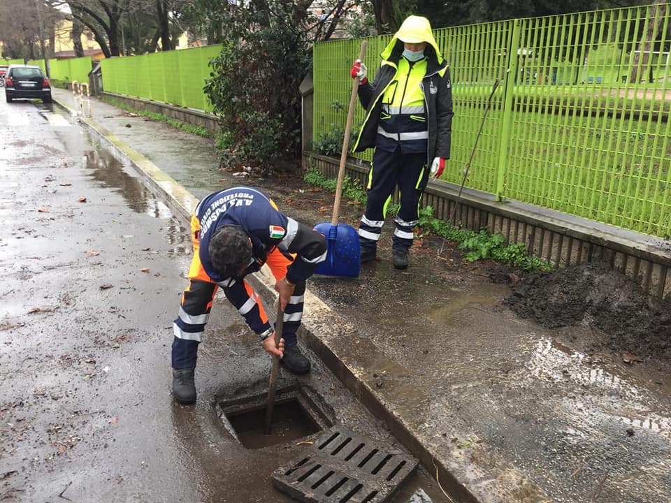 I volontari hanno liberato le caditoie ostruite a via della Cecchina e via delle Isole Curzolane e sono intervenuti di monitoraggio al torrente Lello Maddaleno per via di un innalzamento dei livelli dovuti alle forti piogge.