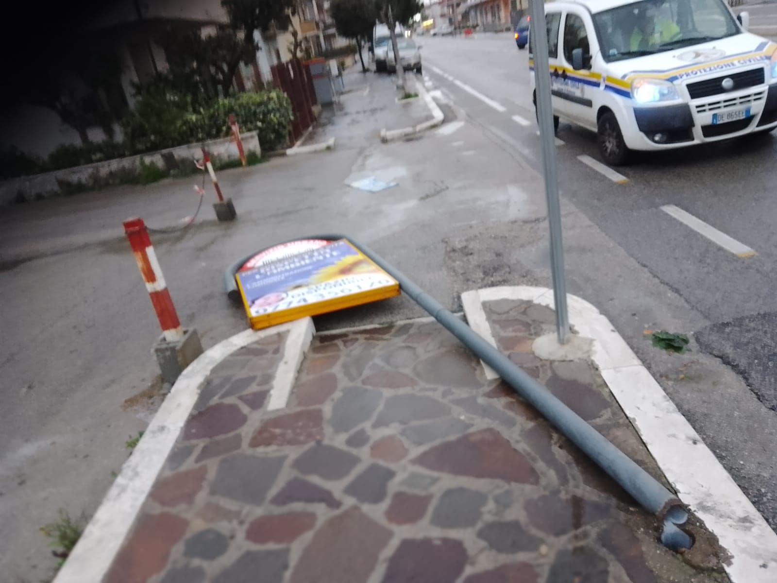 Maltempo nel Sud Pontino, segnaletica divelta dal vento