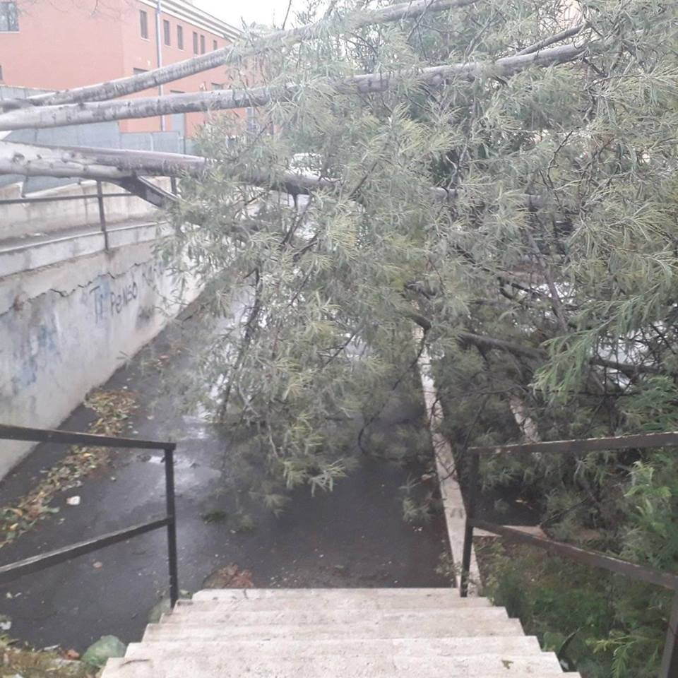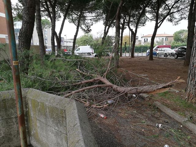 I lettori segnalano un grosso pino crollato in Via Ugo La Malfa, all’incrocio con via F.lli Bandiera, numerosi rami di pino spezzati in via Orazio e un albero caduto in via Farina.