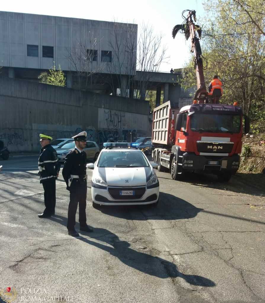 Gli agenti del Pics della Polizia Locale di Roma Capitale hanno liberato la zona dove era stato rinvenuto un insediamento abusivo. Dopo l’abbattimento delle baracche, i giorni scorsi si è potuto dare avvio alla bonifica grazie all’intervento di alcuni mezzi, idonei a ripulire anche le porzioni di terreno più scoscese.