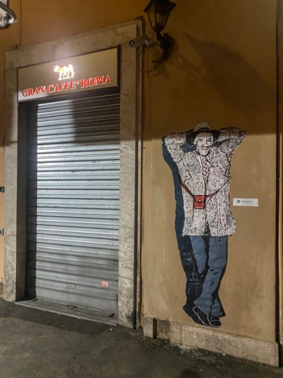 Nella notte tra il 2 e il 3 novembre è comparso un nuovo poster della Street Artist Laika tra via della Tribuna di Tor de’ Specchi e piazza d’Aracoeli. Il manifesto, omaggio a Gigi Proietti, è stato attaccato all’ingresso di quello che, nel mitico film Febbre da cavallo (Steno, 1976) era il bar di Gabriella, la fidanzata di Mandrake, uno dei personaggi più amati interpretati da Proietti.