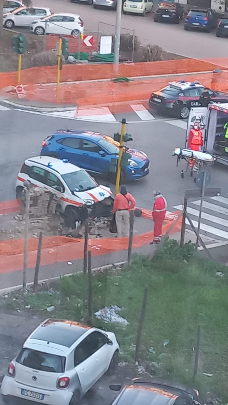 L’incidente è avvenuto a ridosso del calvalcavia. L’automedica ha danneggiato l’impianto semaforico che si trova all’incrocio, mentre la moto, che con molta probabilità proveniva da via delle Isole del Capoverde, dopo l’urto è finita sul marciapiede, schiantandosi contro la recinzione di un cantiere.