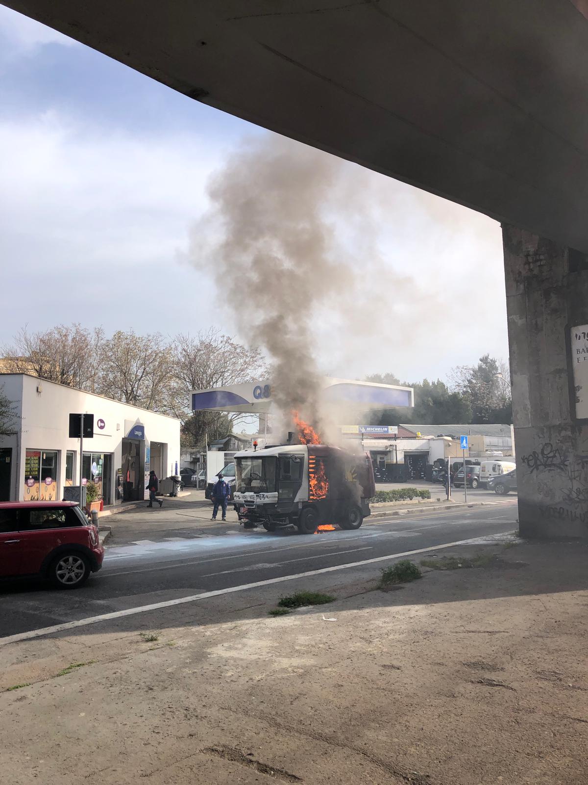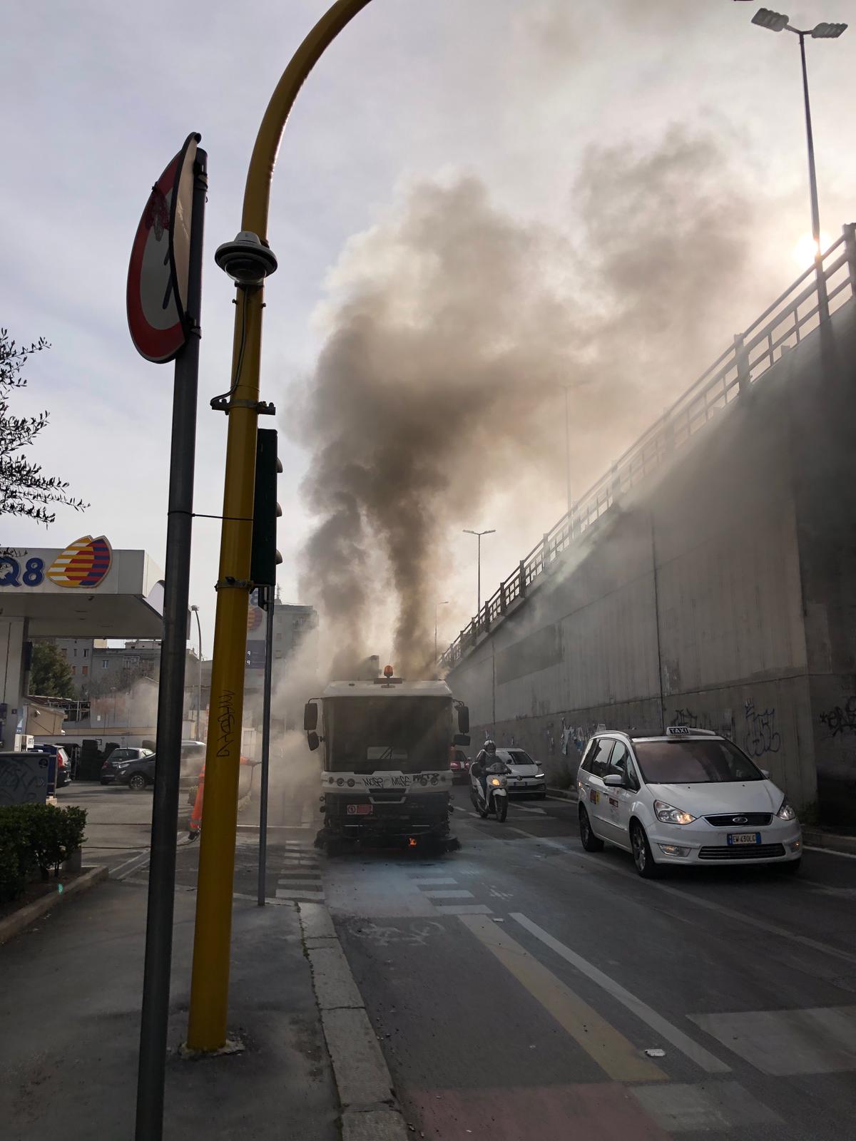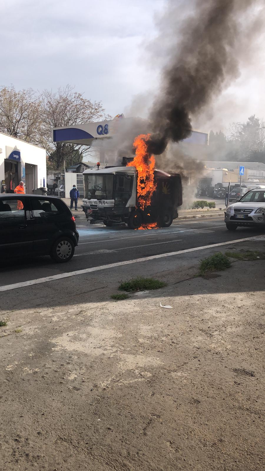 Momenti di paura pochi istanti fa a Roma, in via Prenestina, angolo via Ettore Fieramosca, all’altezza di piazzale Prenestino, al Pigneto. Un mezzo AMA in servizio per la pulizia delle strade ha improvvisamente preso fuoco mentre si trovava a pochi passi da un distributore di carburante.