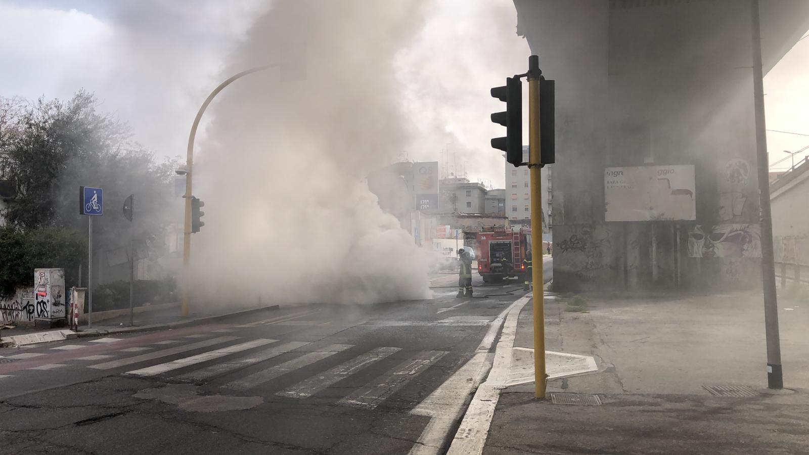 I vigili del fuoco sono arrivati poco dopo e hanno spento le fiamme, ma il mezzo era completamente distrutto. Il fumo aveva già avvolto l’intera zona.