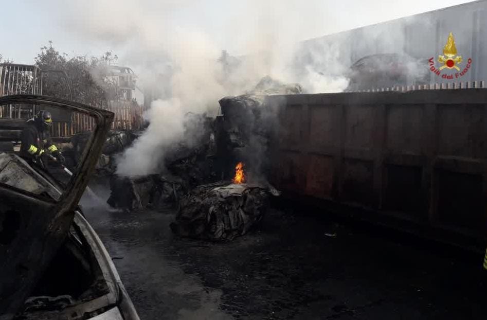 Questa notte, alle ore 00:25 circa, i Vigili del Fuoco sono dovuti intervenire in via della Chimica, per l’incendio di un autodemolitore. A mezzanotte di oggi, la S.O. del Comando di Roma ha dovuto inviare diverse squadre dei Vigili del Fuoco presso Fiano Romano, nello specifico parliamo dell’intervento delle squadre: Montelibretti(5/A), Nomentano(6/A), Campagnano (31/A), tre botti, la kilolitrica proveniente dall’aereoporto di Ciampino, il carro autoprotettori, il carro schiuma ed il funzionario di guardia.