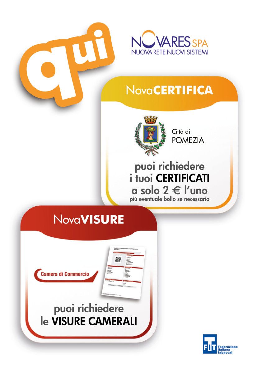 Elenco tabaccherie aderenti e certificati disponibili: www.comune.pomezia.rm.it/anagrafe_tabaccherie