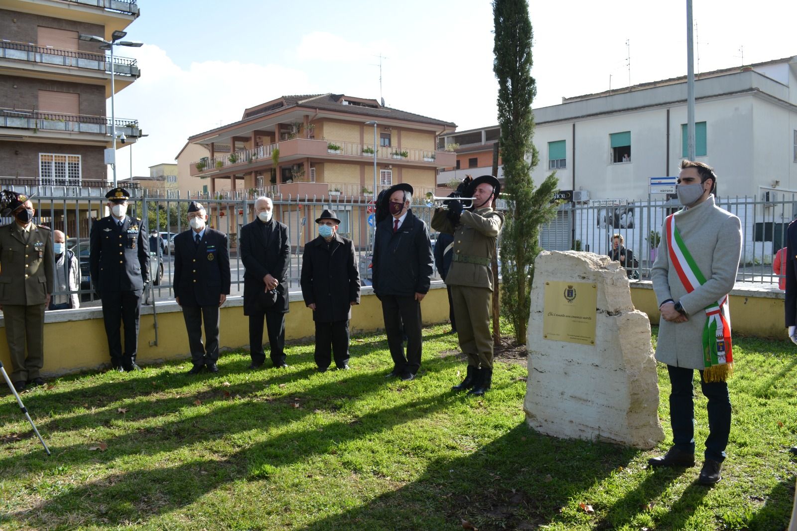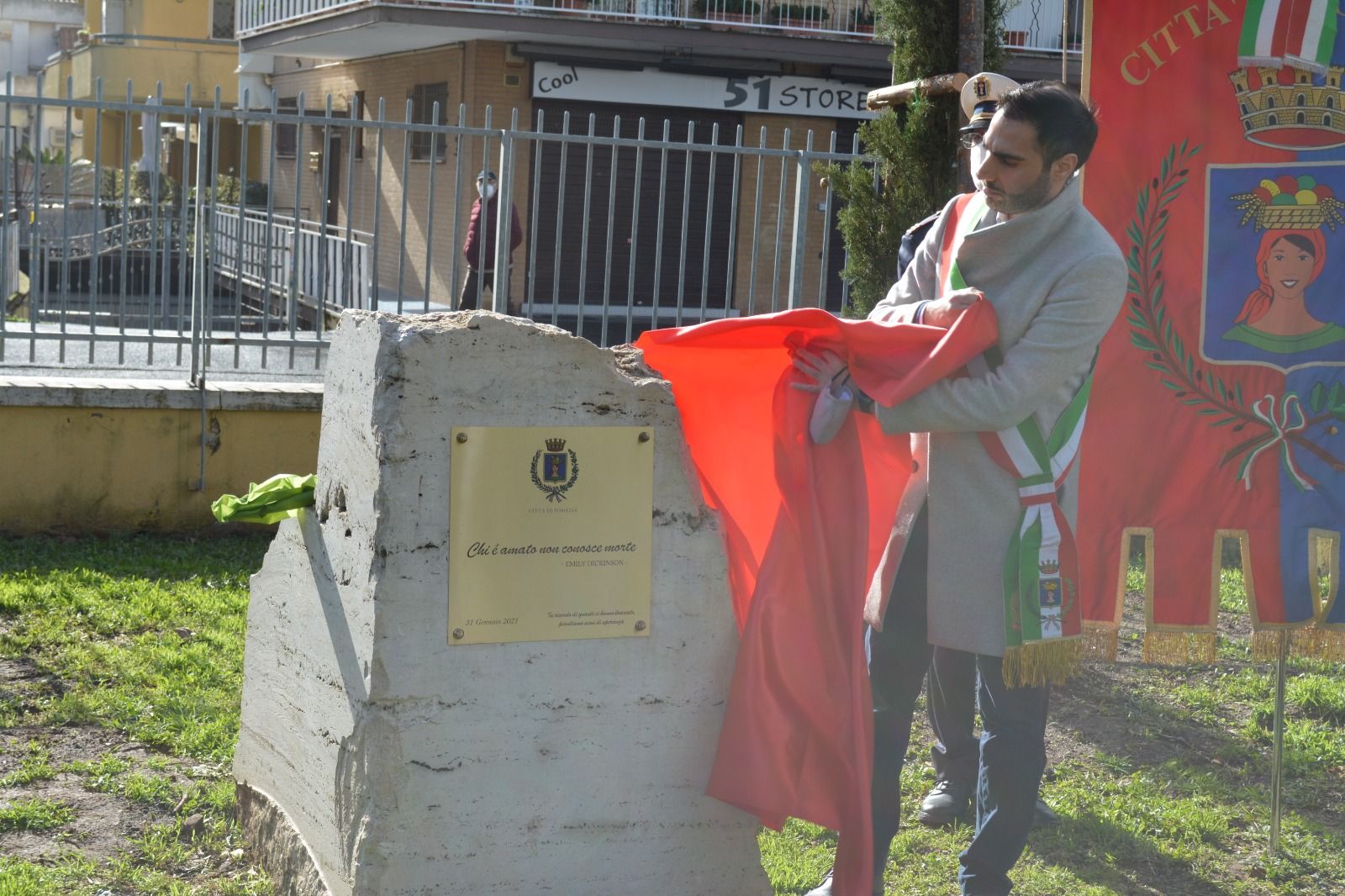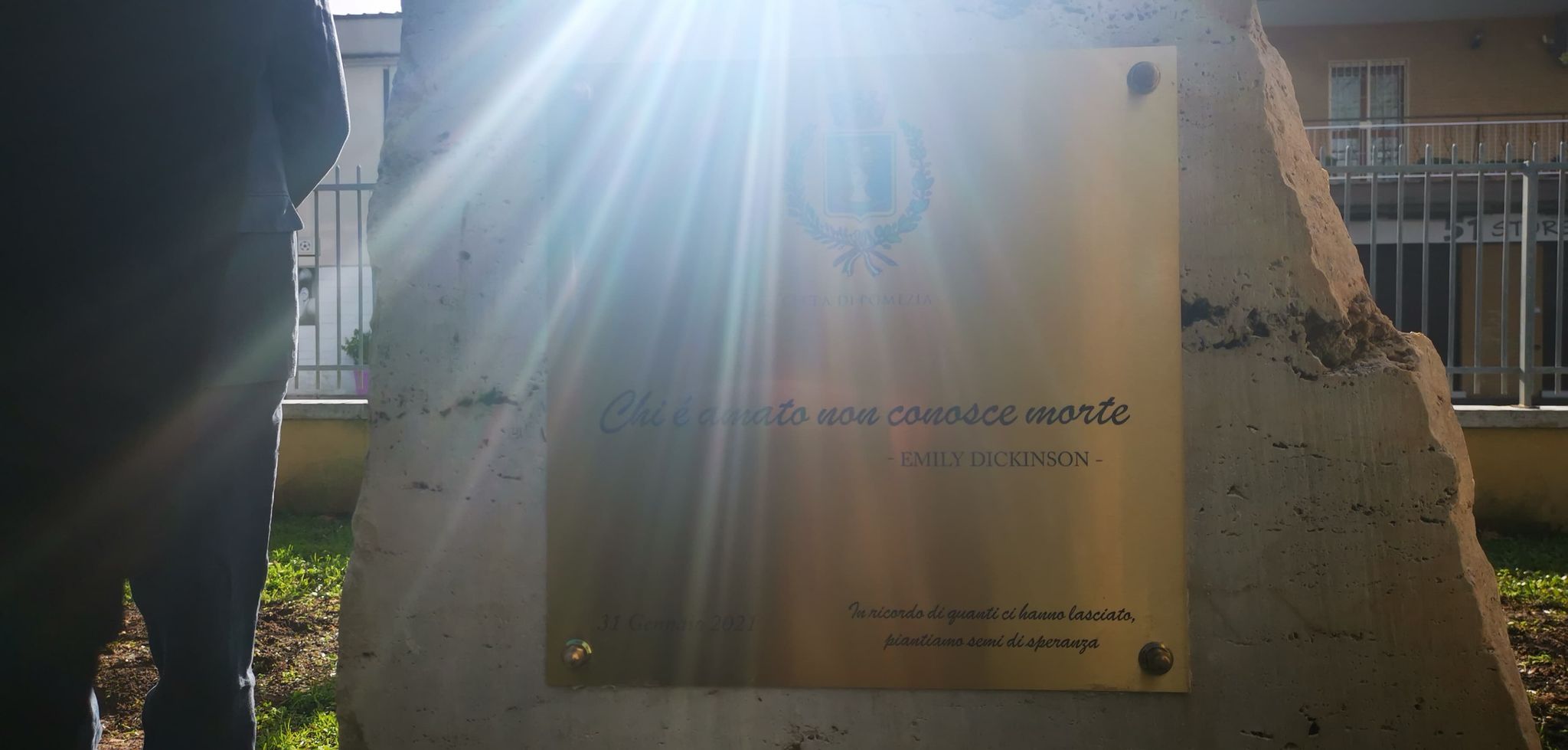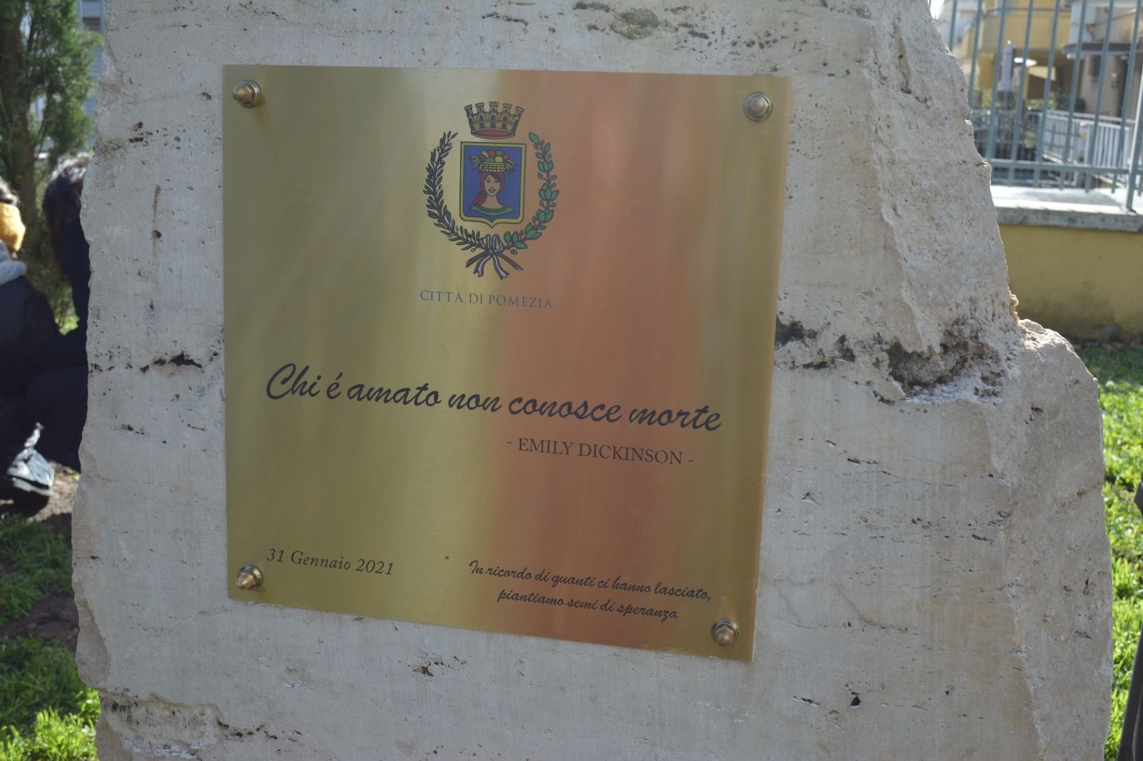 Sulla stele presente al Parco, inaugurata una targa commemorativa con i versi della celebre poetessa Emily Dickinson: “Chi è amato non conosce morte”. A portare solennità al momento di raccoglimento, la riproduzione del celebre brano Il Silenzio a cura dell’associazione nazionale Bersaglieri. Una celebrazione trasmessa in diretta Facebook in modo da colmare la distanza imposta dal virus con una partecipazione virtuale della comunità pometina.