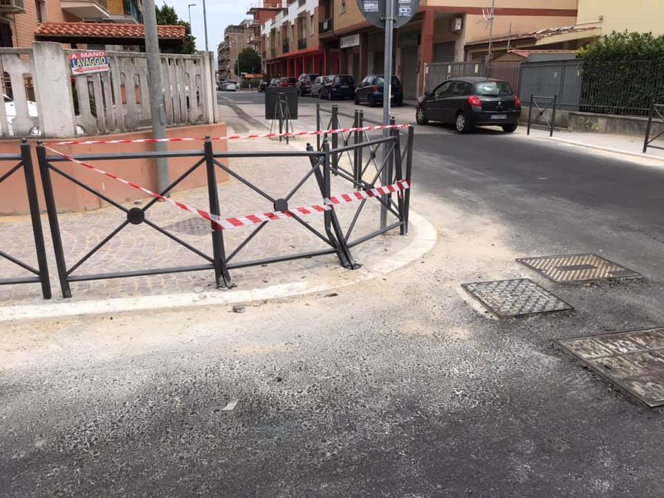 Pomezia, rifanno l’asfalto ma non la segnaletica: 3 incidenti in 3 giorni (FOTO)
