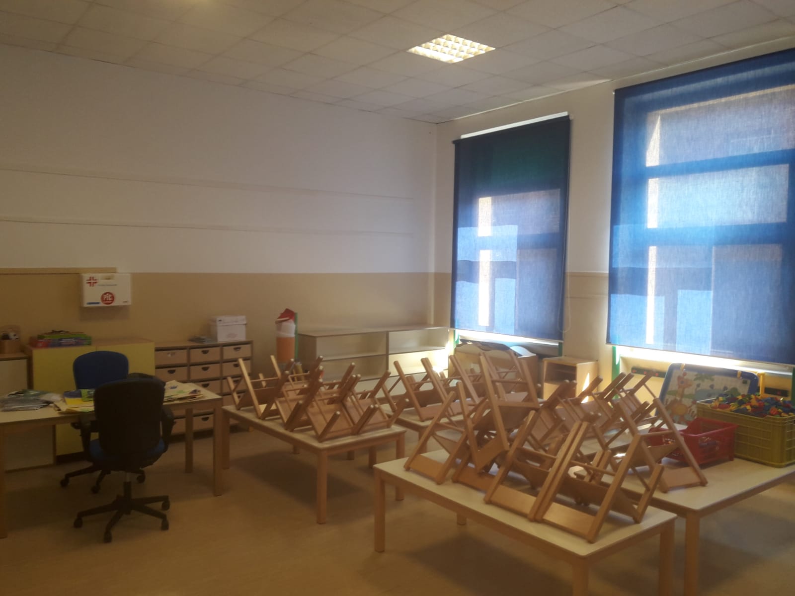 La prima oggetto di intervento è stata la scuola d’infanzia Maria Immacolata, dove è stata effettuata una tinteggiatura totale di tutti gli spazi interni.