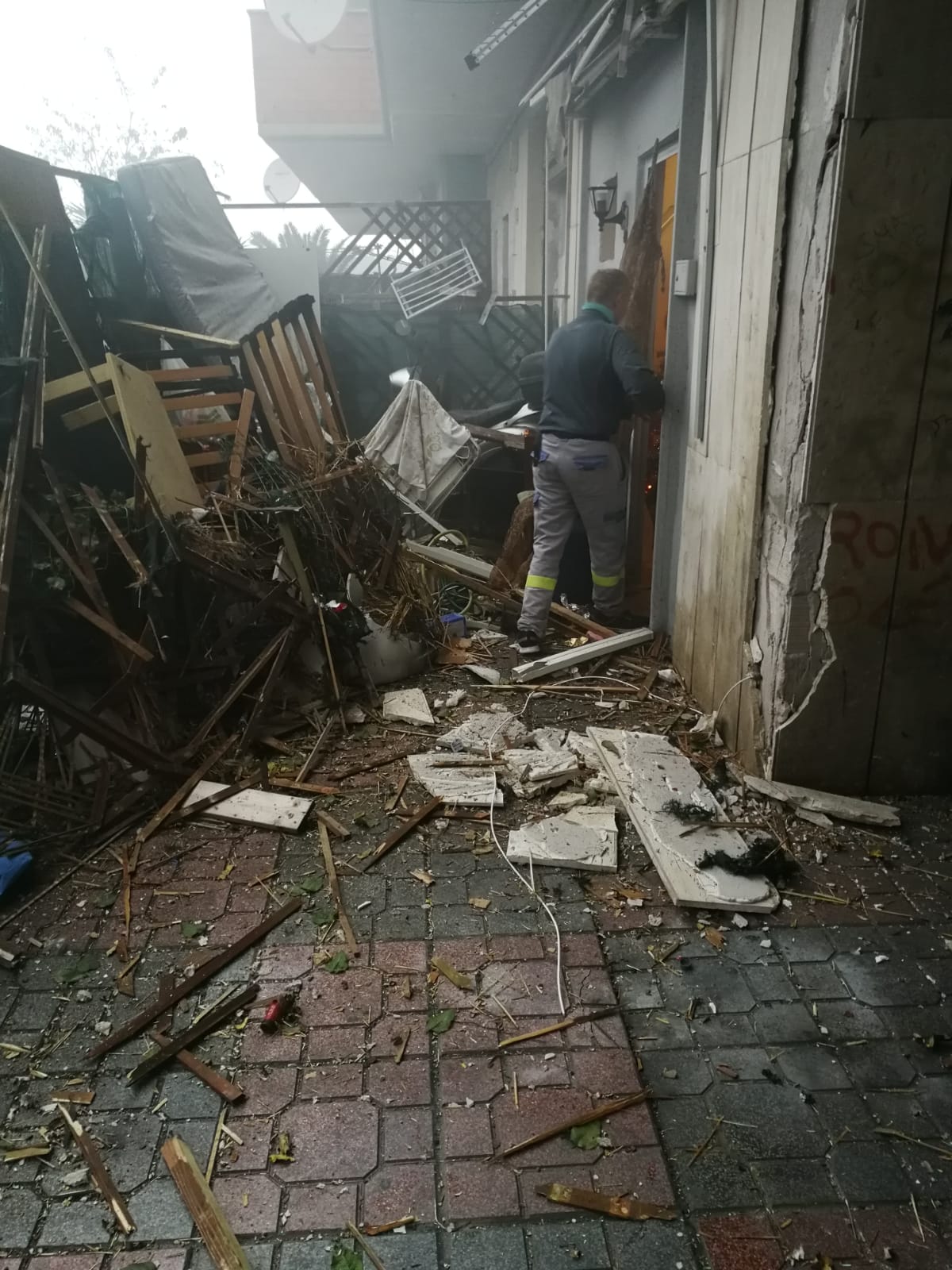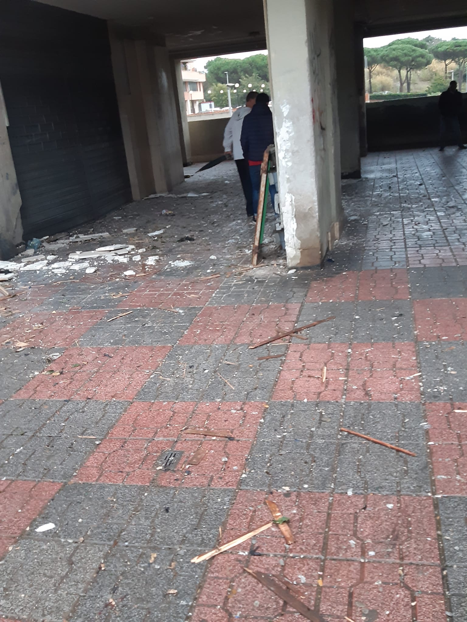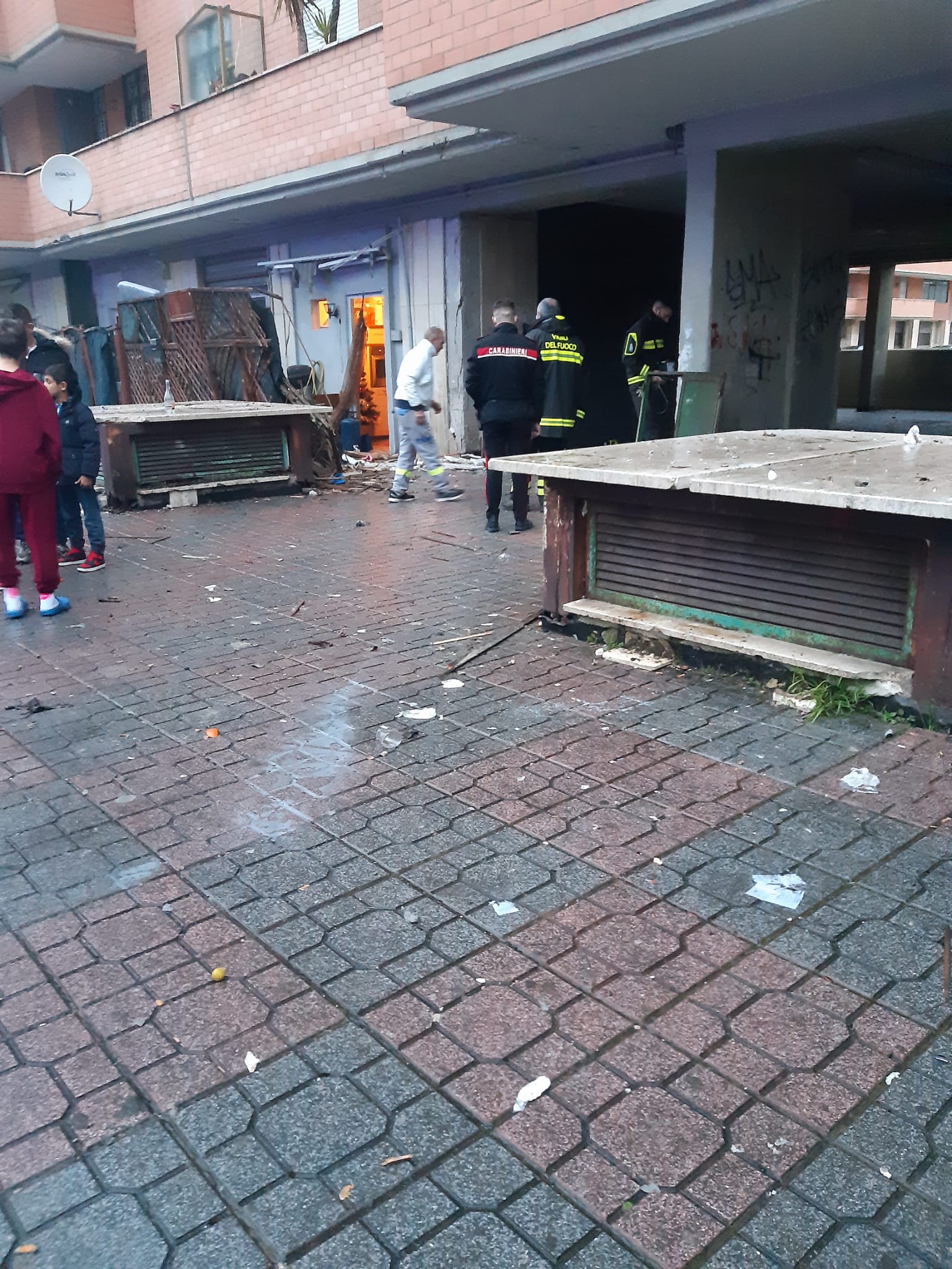 Già da qualche ora si sentivano esplodere dei petardi in maniera molto rumorosa, ma nessuno avrebbe mai immaginato quanto sarebbe successo di lì a poco. Verso le 15:30 qualcuno ha lanciato un “ordigno” artigianale, chiamato “cipolla”, uno dei più potenti che esistano. L’esplosione è stata devastante: il maxi petardo ha colpito uno di quelli che originariamente sarebbero dovuti essere negozi, poi occupati abusivamente e utilizzati come abitazione. Si tratta del primo sul piazzale venendo da via Fellini. L’esplosione ha causato il crollo di diversi calcinacci nella parte esterna, mentre all’interno sono crollati gli arredi e parte dell’intonaco. La deflagrazione è stata talmente forte che l’appartamento sovrastante, nella scala H, è stato colpito, riportando numerosi danni. La donna che vi abita, in preda allo choc per lo spavento, ha dovuto ricorrere alle cure del 118, rapidamente intervenuto.