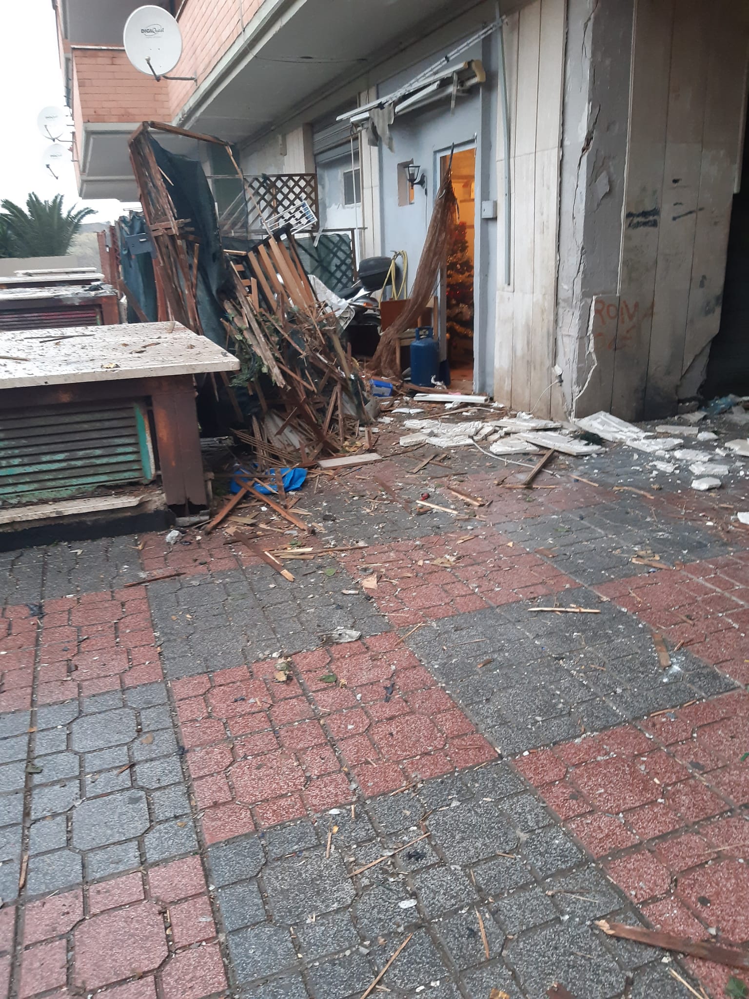 Pomezia, terrore in via Fellini: fanno esplodere un maxi petardo illegale, devastati un ‘negozio’ e un appartamento (FOTO E VIDEO)