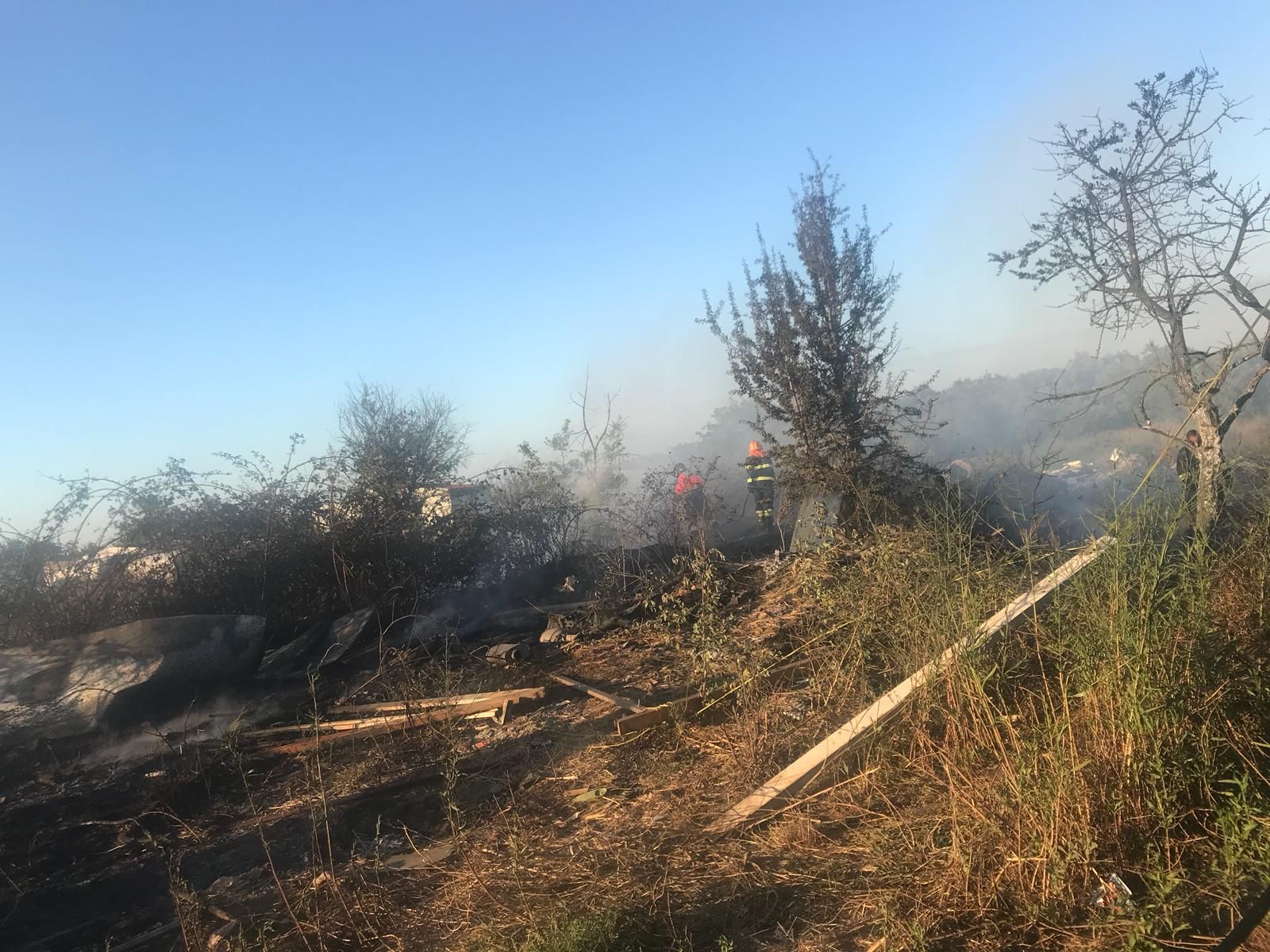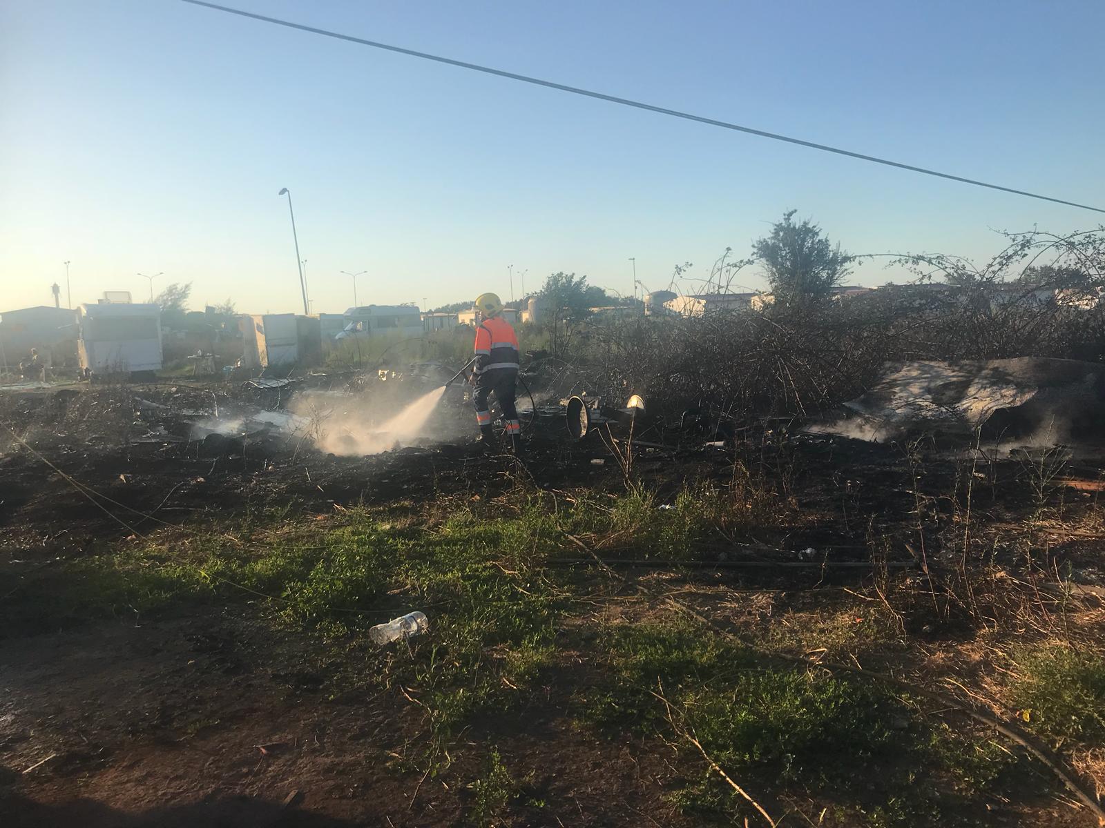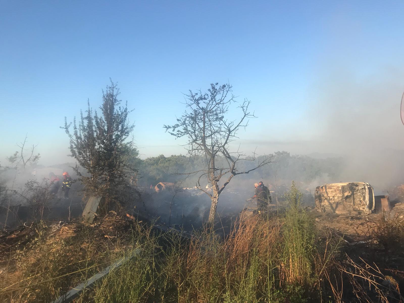 A fuoco rifiuti e diverse carcasse di automobili, presumibilmente rubate e cannibalizzate.