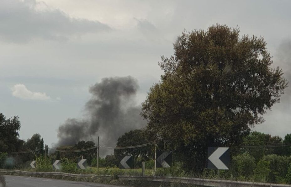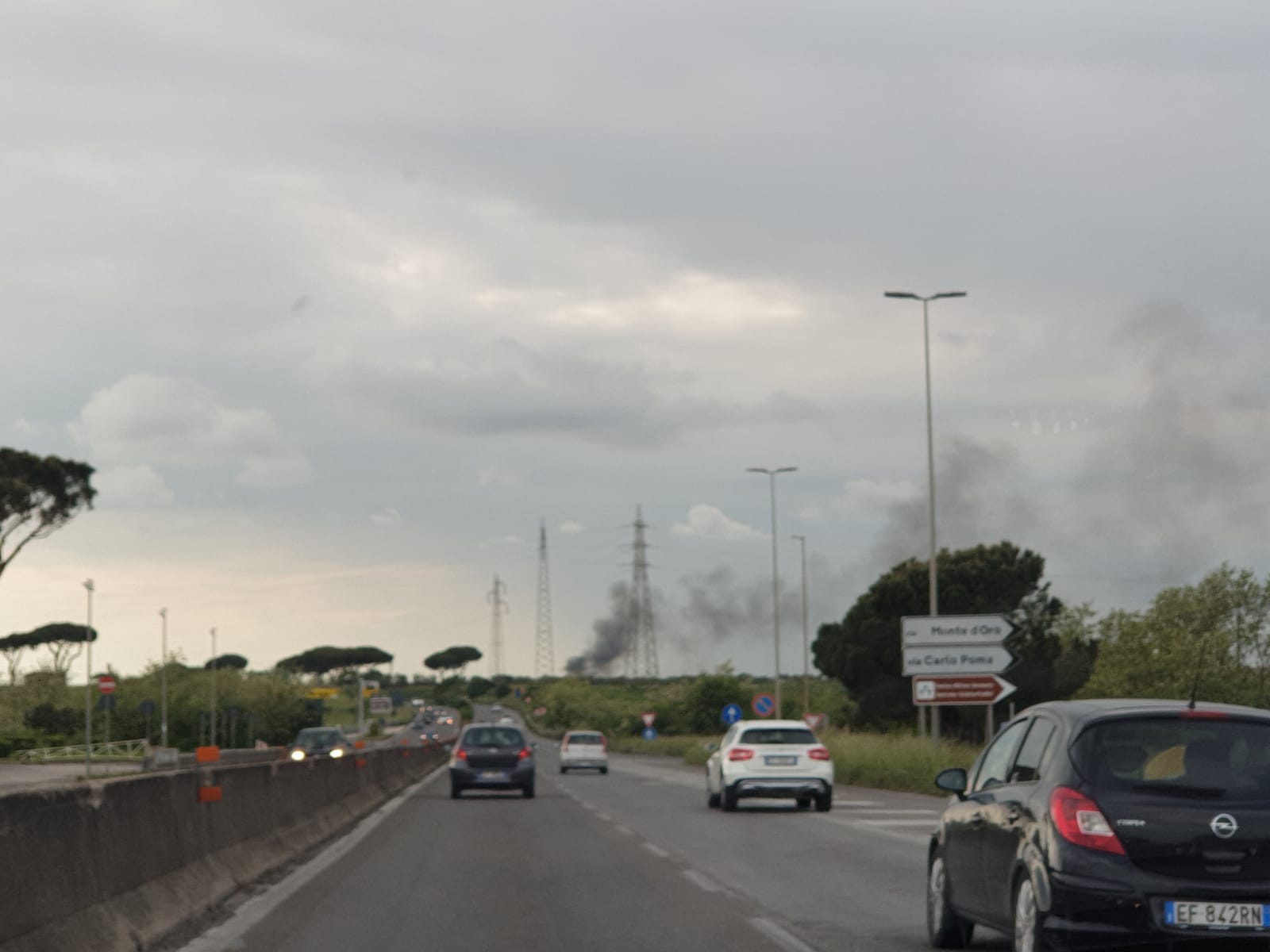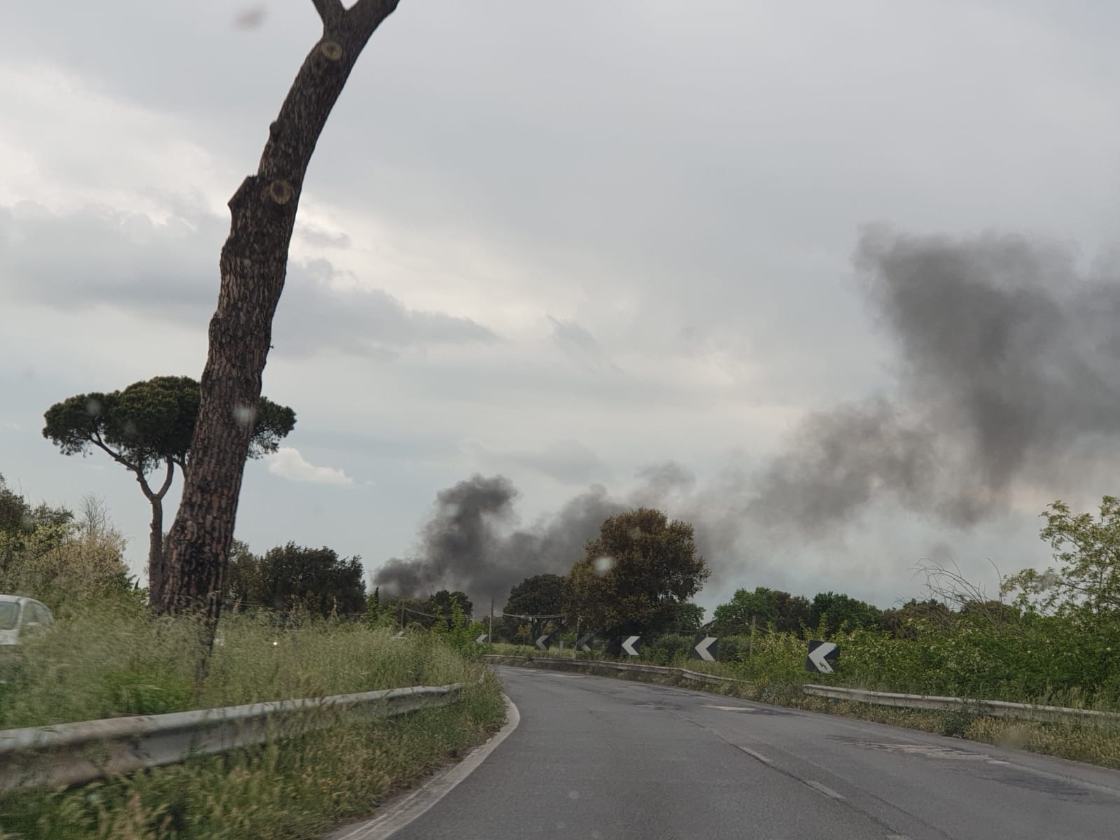 Ci risiamo. Un nuovo vasto incendio è divampato nei pressi del campo rom di Castel Romano, su via Pontina.