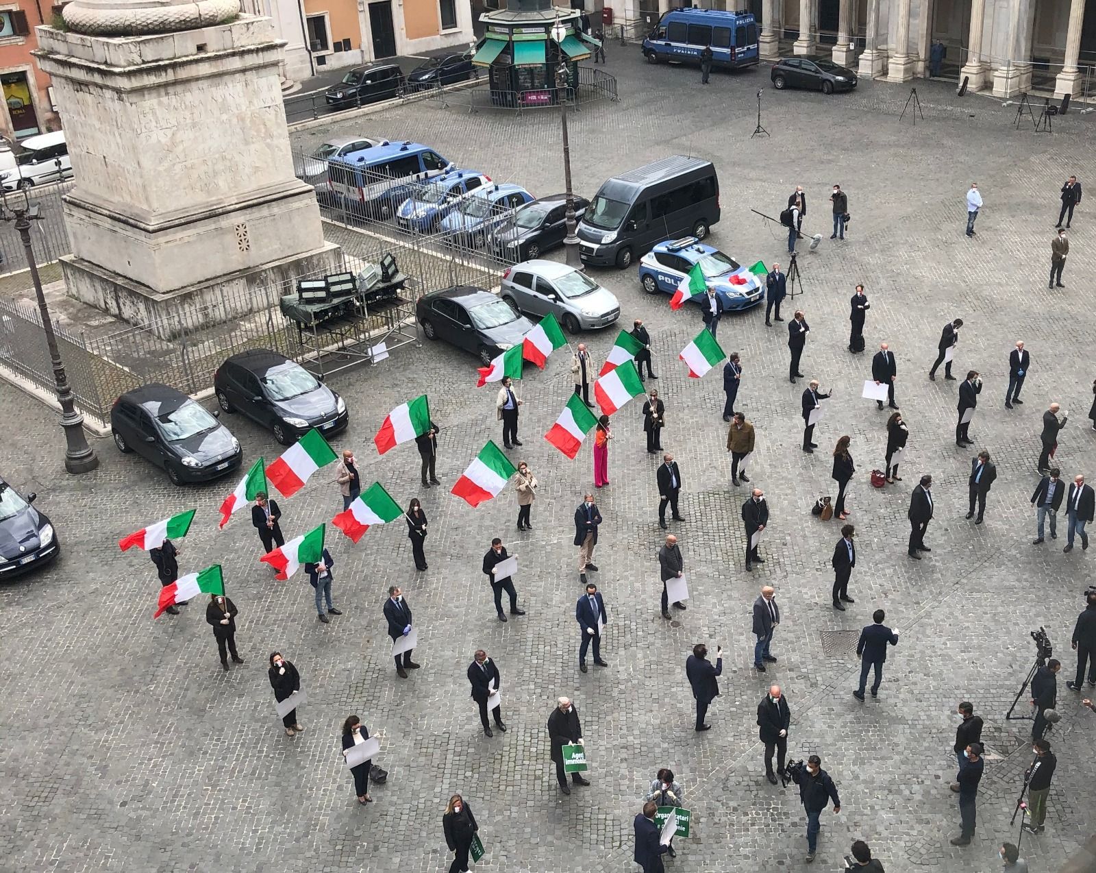 “La nostra non è soltanto una protesta – continua Procaccini – ma una richiesta al governo di ascoltare le nostre proposte e di ricondurre ogni decisione sulle sorti del nostro Paese all’interno del confronto parlamentare. Oltre ai decreti calati dall’alto, senza alcun confronto serio con tutte le forze politiche, c’è un’altra strada per affrontare l’emergenza economica. Quella di stabilire dei parametri di sicurezza, come la determinazione delle distanze da rispettare e delle procedure di sanificazione, così da consentire a tutti coloro che possono e vogliono rispettarli di riaprire subito; distinguere, inoltre, fra i territori, anziché fra le categorie economiche, e applicare le restrizioni in modo dinamico a seconda della diffusione del contagio. Sono soltanto alcune delle proposte su cui oggi, nel massimo rispetto delle misure di sicurezza, ci sarebbe piaciuto essere stati ascoltati dal Governo. Così non è accaduto ma continueremo a far sentire la voce dell’Italia che nessuno ascolta”.