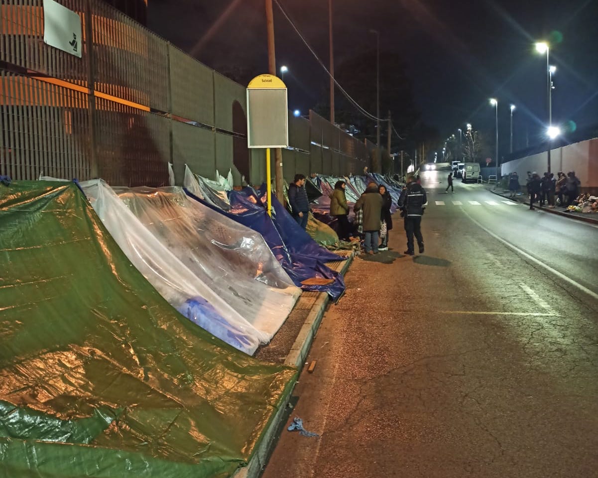 Una tendopoli improvvisata che occupa l’intero marciapiedi e una parte della strada, quella riservata alla fermata del bus. Decine di “posti letto” per immigrati irregolari sotto gli occhi di tutti. E, ancor più, sotto gli occhi degli agenti della polizia locale e della polizia di Stato, oltretutto dell’ufficio immigrazione.