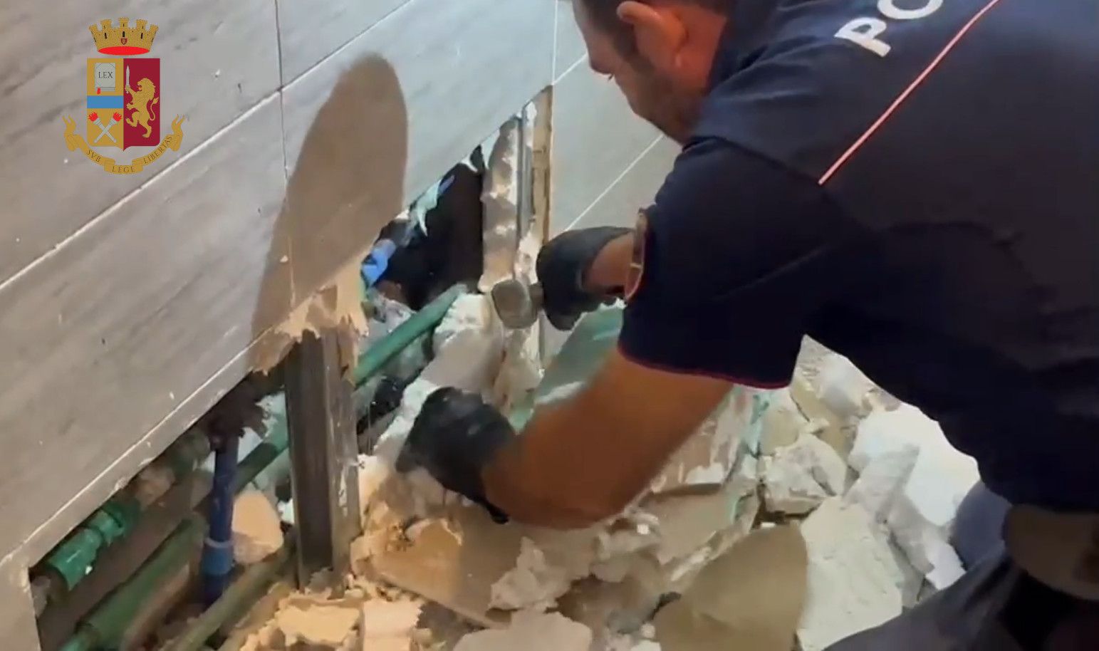 Gli agenti hanno proceduto alla perquisizioni e grazie al cane antidroga ‘Faro’ hanno trovato in casa circa 60 grammi di cocaina e 92 grammi di hashish, occultati sia all’interno del bagno, nello specifico all’interno di un finto tubo di scarico, sia all’interno della camera da letto. Ma non solo. Sono stati trovati 210 euro in contanti e materiale idoneo alla pesatura e confezionamento dello stupefacente, ma anche una sostanza da taglio pari a 380 grammi.