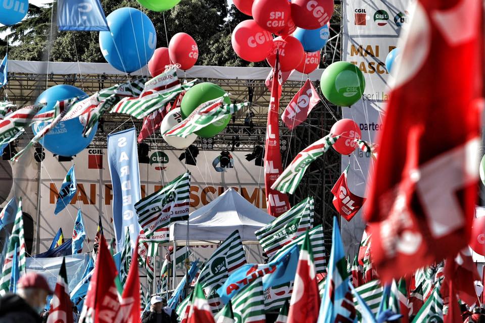 “Noi con i fascisti abbiamo finito di parlare il 25 aprile 1945”. Con questo striscione si apre la manifestazione della Cgil, Cisl e Uil organizzata per oggi a Roma. Lavoratori e lavoratrici seguono Maurizio Landini (segretario generale della Cgil) fino in piazza San Giovanni dove, ad attenderli, ci saranno bandiere, palloni colorati e i sindacati. Tutti in piazza per dare il via alla manifestazione “Mai più fascismi”.