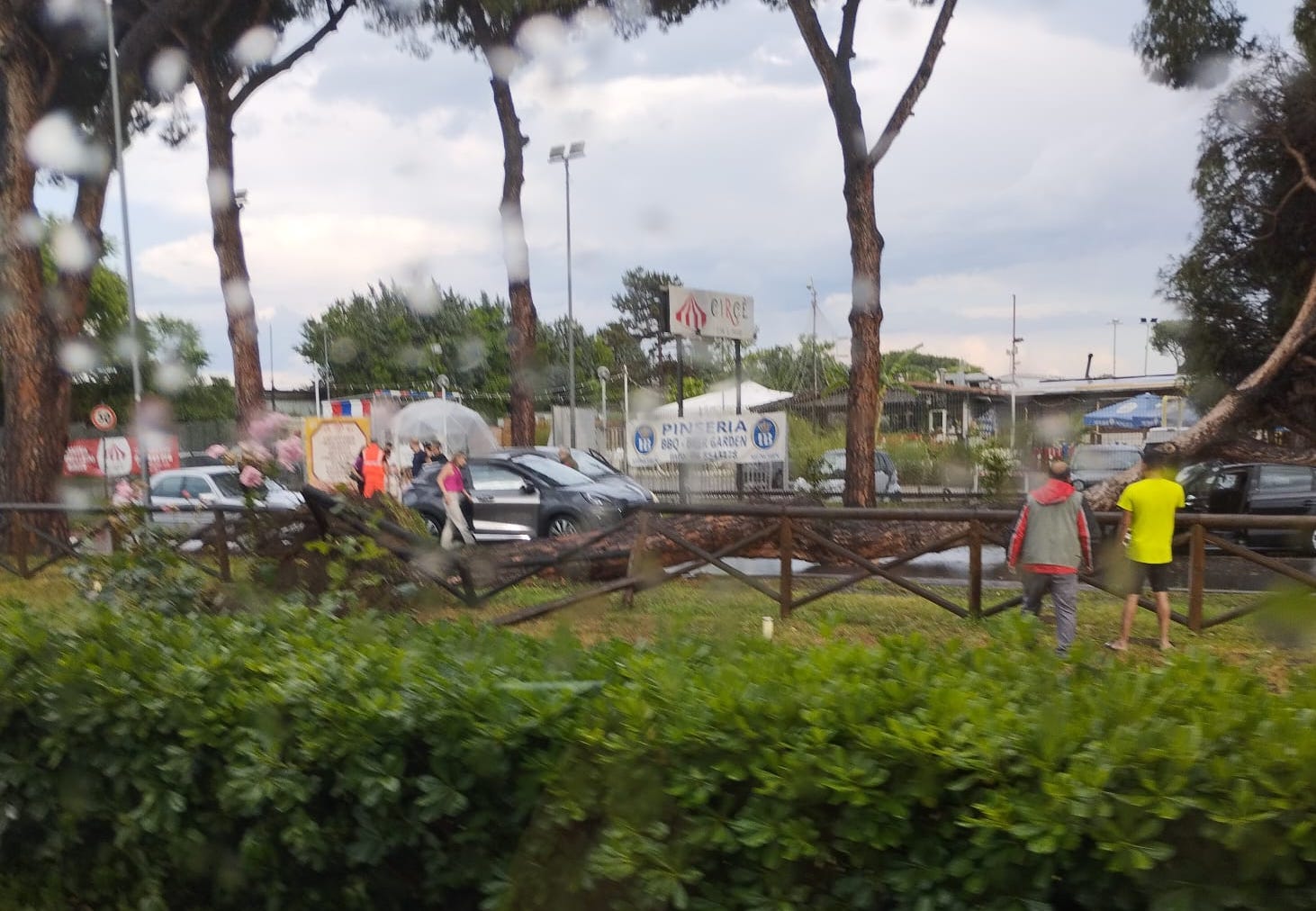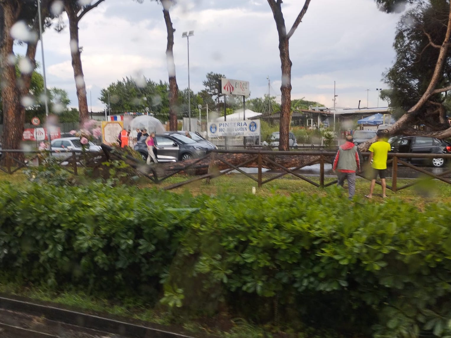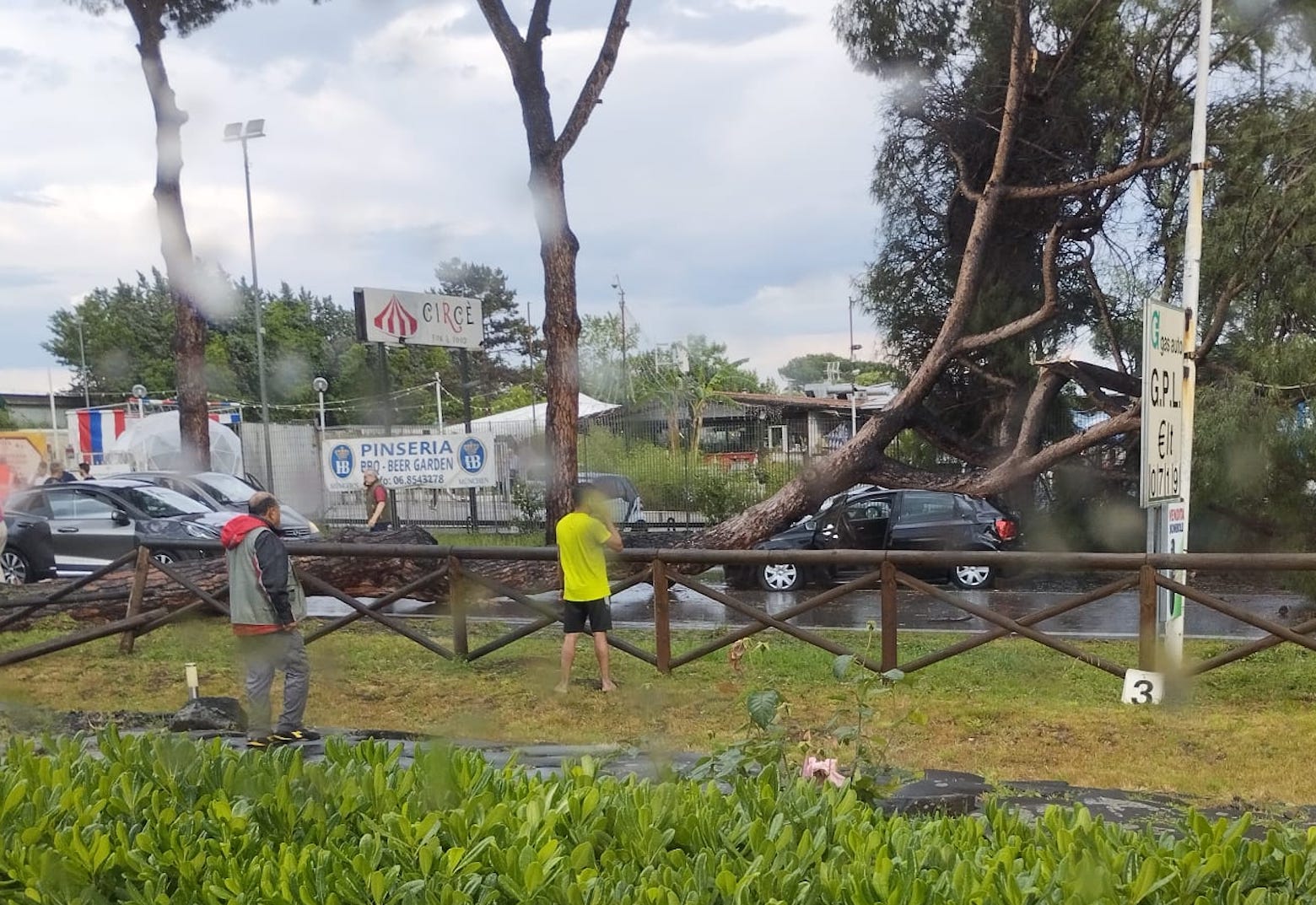 A bordo della vettura si trovava una ragazza, che è rimasta ferita alla testa. L’albero, un grosso pino, si è completamente sradicato ed è caduto sull’auto, colpendola tra il cofano e il vetro anteriore.