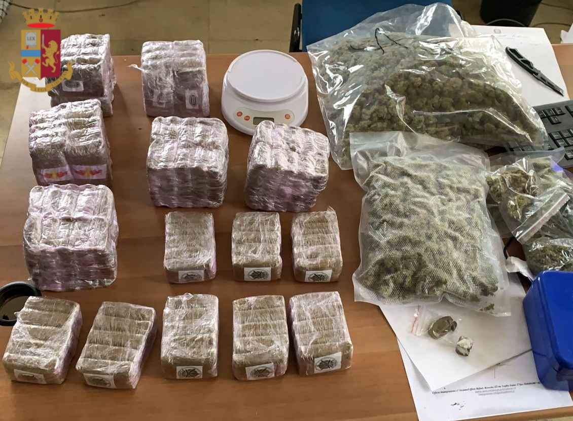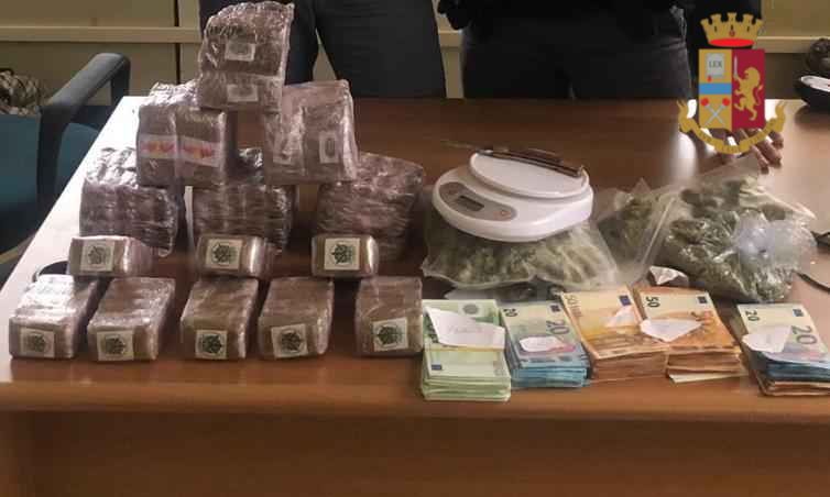 Il controllo è continuato nell’abitazione dell’uomo, identificato per F.A., romano di 39 anni, dove vive con la compagna M.E. romana di 42 anni. I poliziotti durante la perquisizione hanno rinvenuto e sequestrato 5 buste contenenti marijuana per un peso di circa 900 grammi, nonché 100 panetti di hashish di diverse qualità per un peso di circa 8 chili.