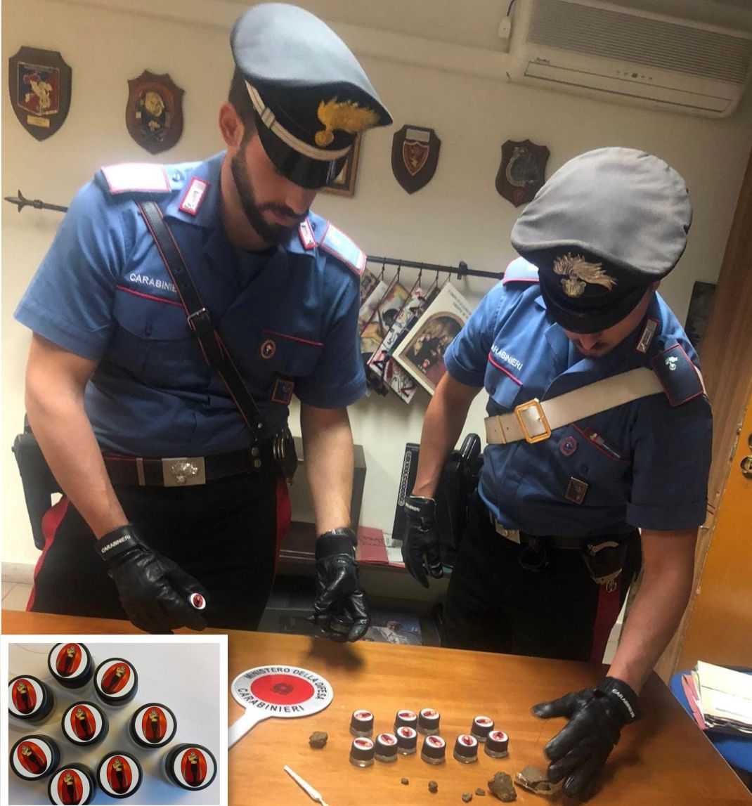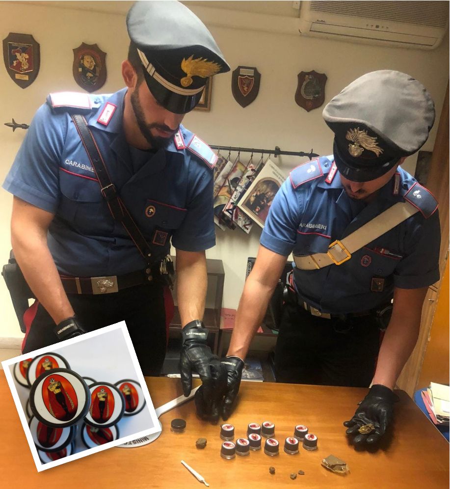 Il pusher, un 25enne romano già noto alle forze dell’ordine, è stato fermato a bordo di un’auto. Era in compagnia di un amico, un ragazzo di 32 anni che, seduto sul lato passeggero, ha tentato – ma invano – di disfarsi della droga. E di gettare dal finestrino uno zaino con 10 dosi di hashish, tutte con quella strana etichettatura.