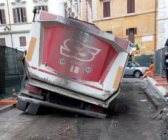 Erano intenti a lavorare in via della Rotonda, nel pieno centro di Roma, quando l’autocarro che si occupava della manutenzione del manto stradale è sprofondato nel cemento, in una buca che sembra essersi aperta forse a causa dell’umidità di questi giorni. Il camion trasportava detriti che non sembrano essersi rovesciati. Sono intervenuti sul posto le pattuglie della Polizia Locale del gruppo I centro “Ex Trevi”, intorno alle 12.30. Restano da accertarsi ulteriori dettagli.