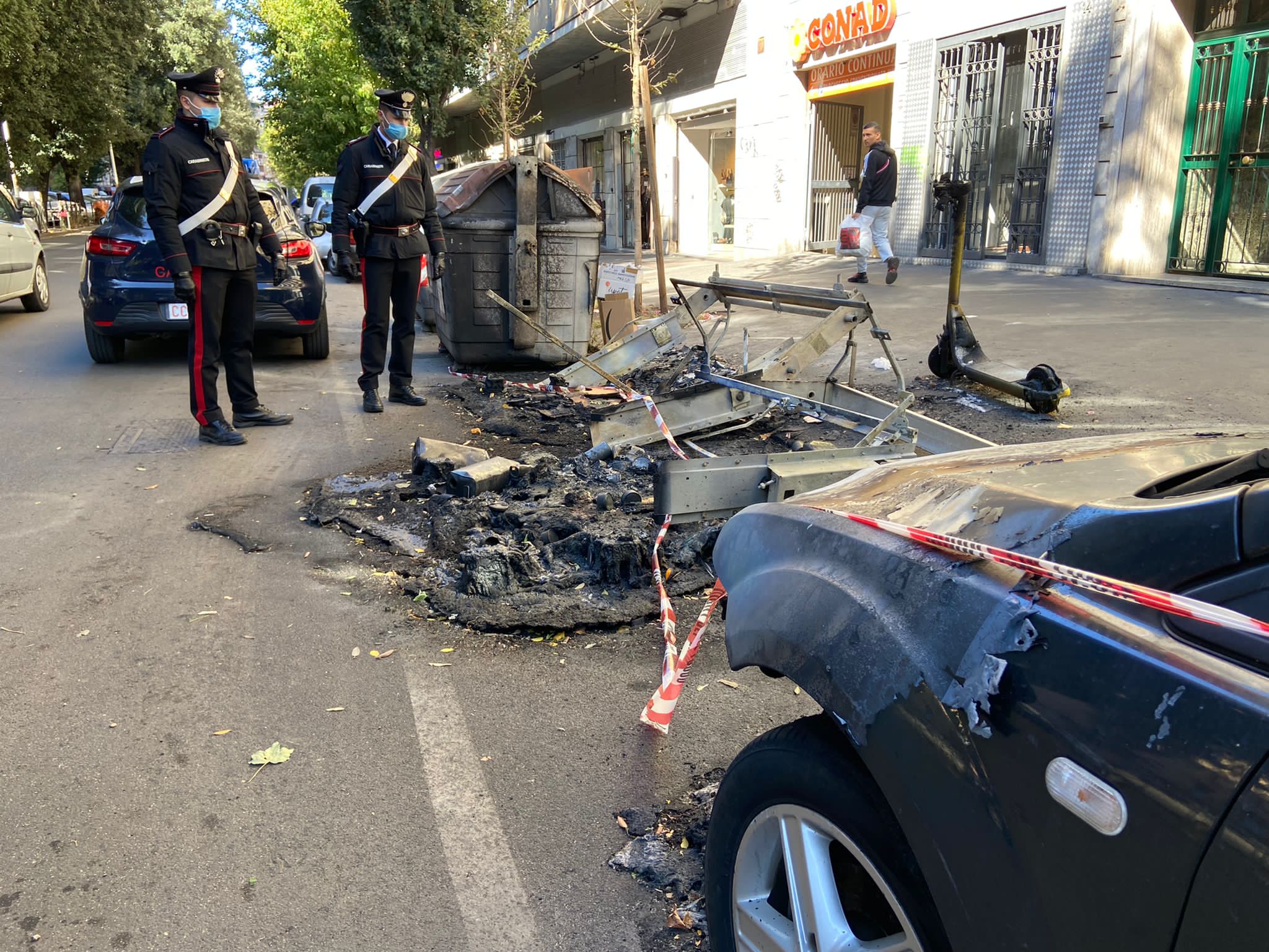 Allertate le forze dell’ordine sul posto sono accorsi i Vigili del Fuoco, subito in azione per spegnere le fiamme. In concomitanza sono accorsi i Carabinieri della Stazione Roma Porte Portese per effettuare i rilievi e un sopralluogo. Non distante dal punto dove l’incendio era in atto i militari hanno notato un uomo, in atteggiamento sospetto, fermo sulla stessa via.