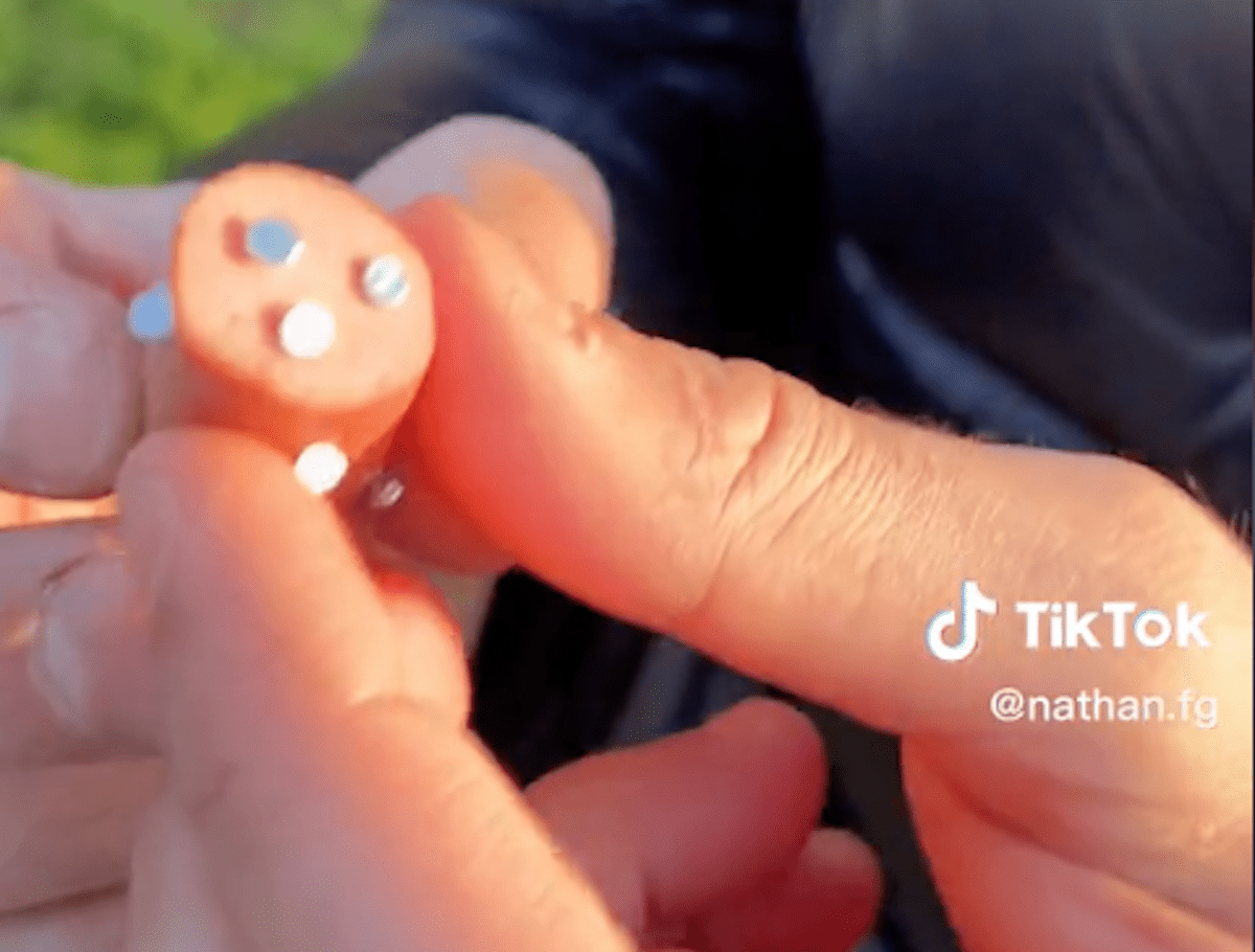“Guardate che cosa ho trovato”, ha detto mostrandolo in video, poi caricato sul suo profilo TikTok Nathan.fg. “È un würstel pieno di chiodi, lasciato qui da qualche ‘persona’. Che poi dire persona è un complimento, peccato che non posso usare le parole che veramente si merita. Se il mio cane avesse mangiato questo, oggi, avrei ricordato questa giornata per tutta la vita”.