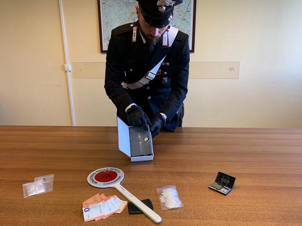 Durante la successiva perquisizione domiciliare, i Carabinieri hanno notato uno scaffale con un libro che sporgeva più degli altri. Incuriositi, i Carabinieri lo hanno aperto ed hanno scoperto che la copertina rigida del dizionario, nascondeva al suo interno una cassetta metallica, dove all’interno vi erano nascoste altre 8 dosi della stessa sostanza. Sempre nella sua camera da letto i Carabinieri hanno rinvenuto e sequestrato anche un bilancino di precisione e materiale vario utilizzato per il taglio e il confezionamento delle dosi.