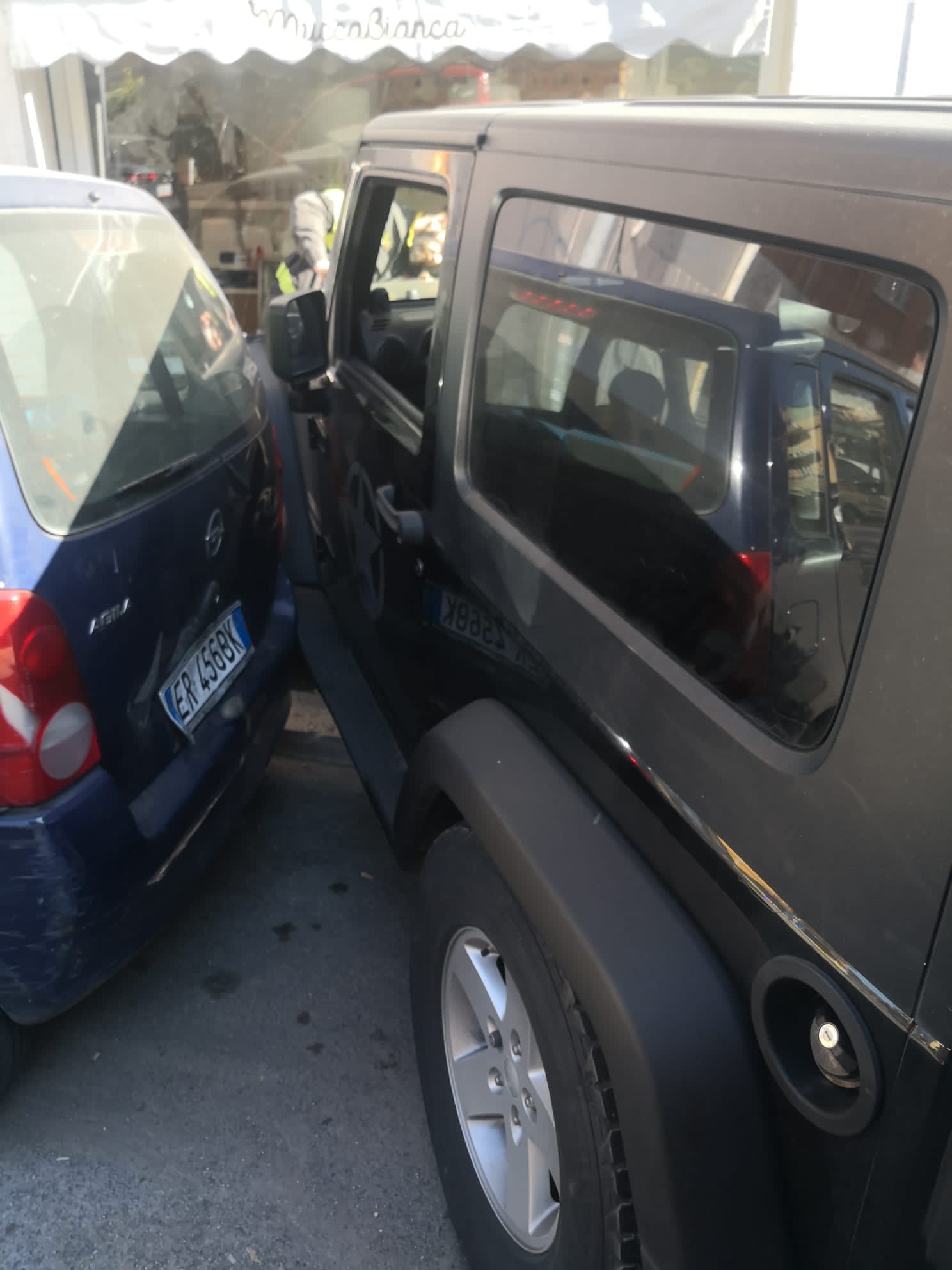 Jeep ingrande vetrina gelateria a Roma