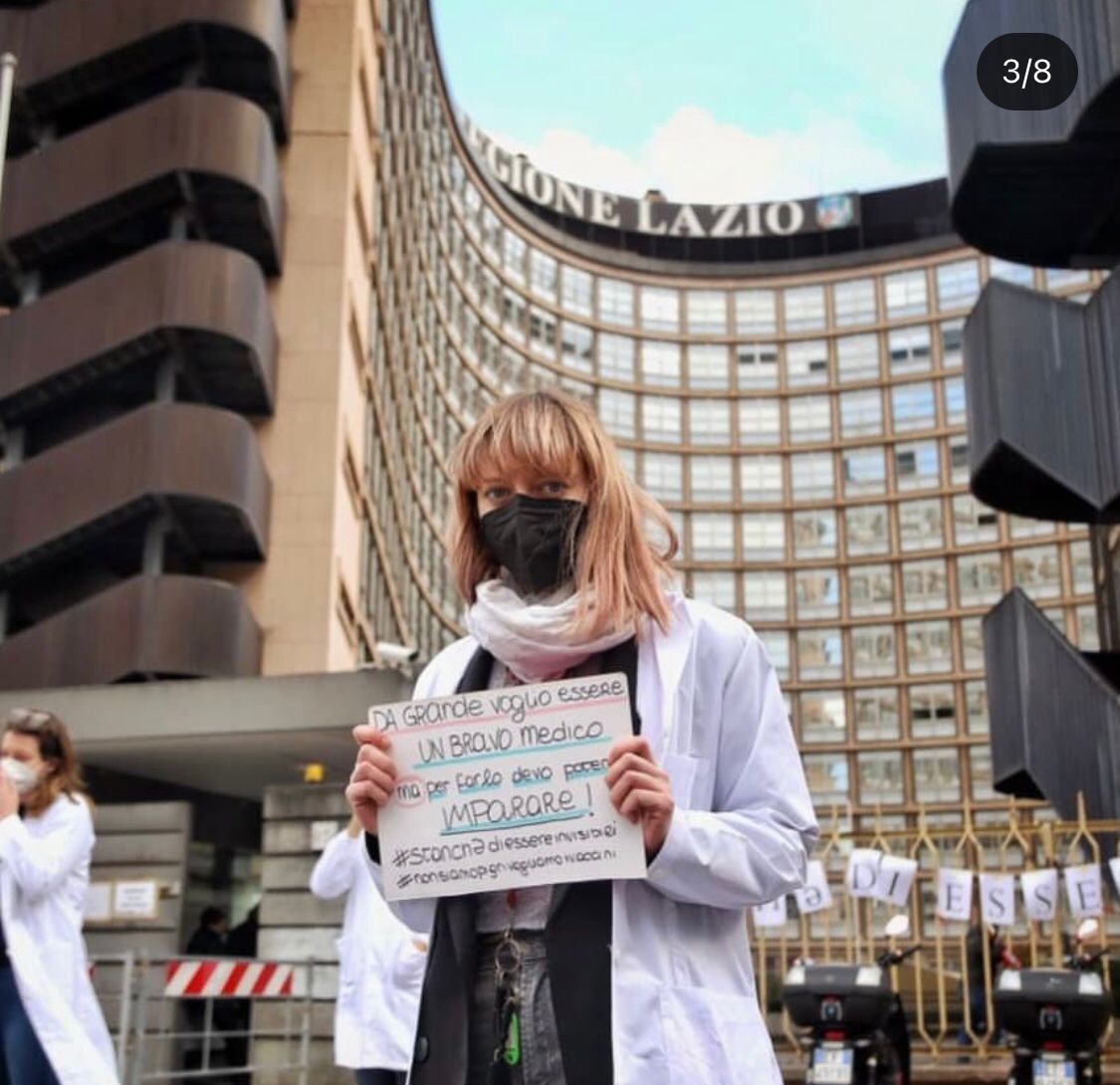 “Stanchi di essere invisibili” recita un cartello appeso davanti il Palazzo della Regione di Roma dagli studenti di medicina. Studenti, per lo più tirocinanti, che dai primi di marzo si sono unti in uno ‘sciopero permanente’ e che ieri sono stati ricevuti da Egidio Schiavetti, il responsabile della segreteria dell’assessore alla Sanità.