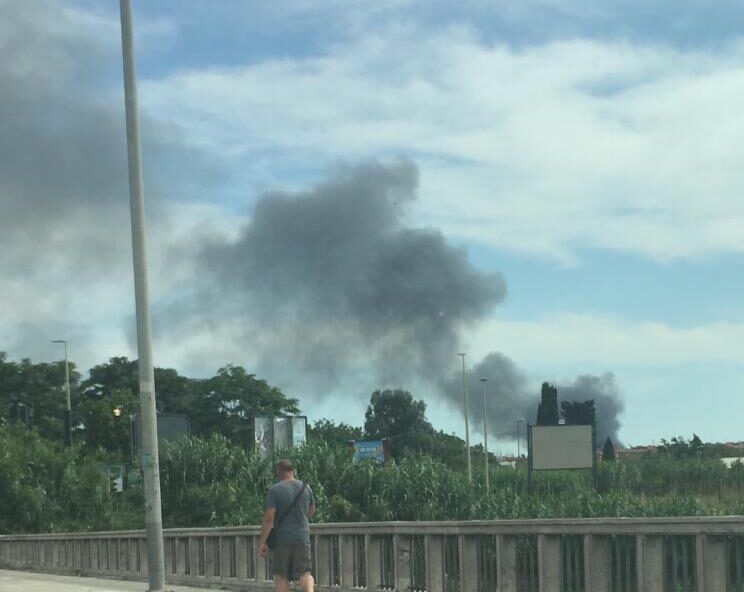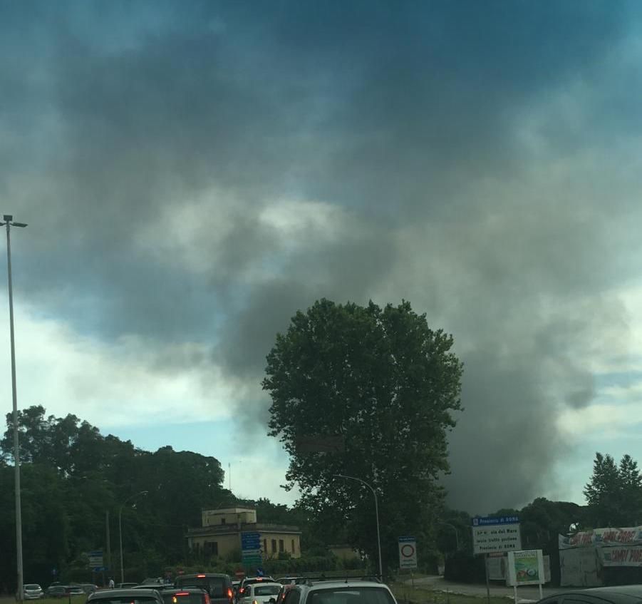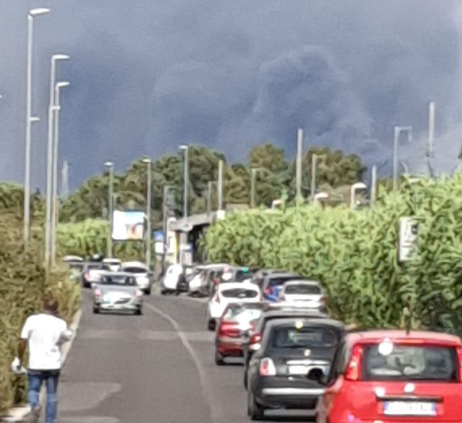 Una grossa e densa colonna di fumo nero si è levata nel cielo ed è visibile a diversi chilometri di distanza, praticamente da tutta la città.