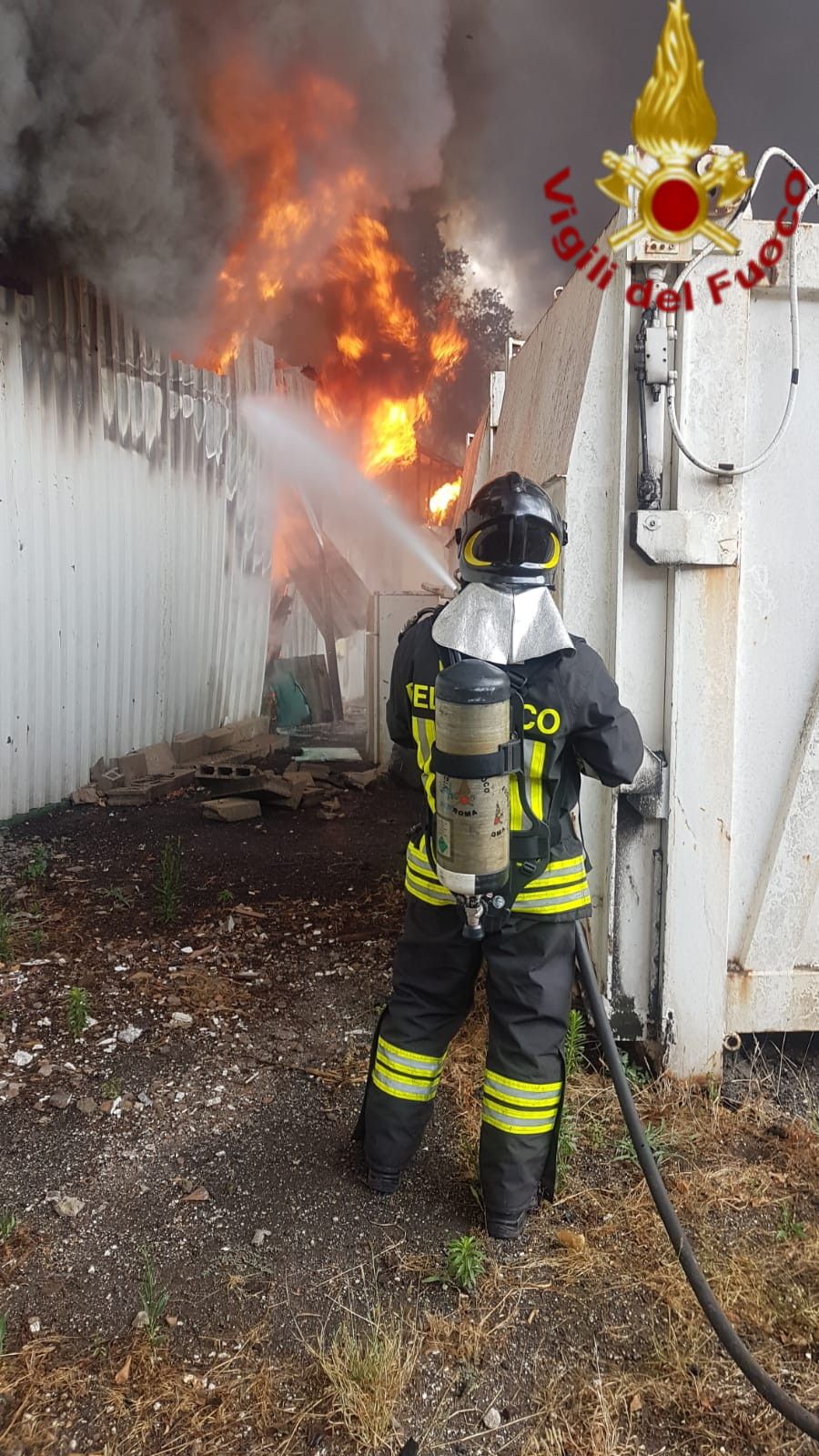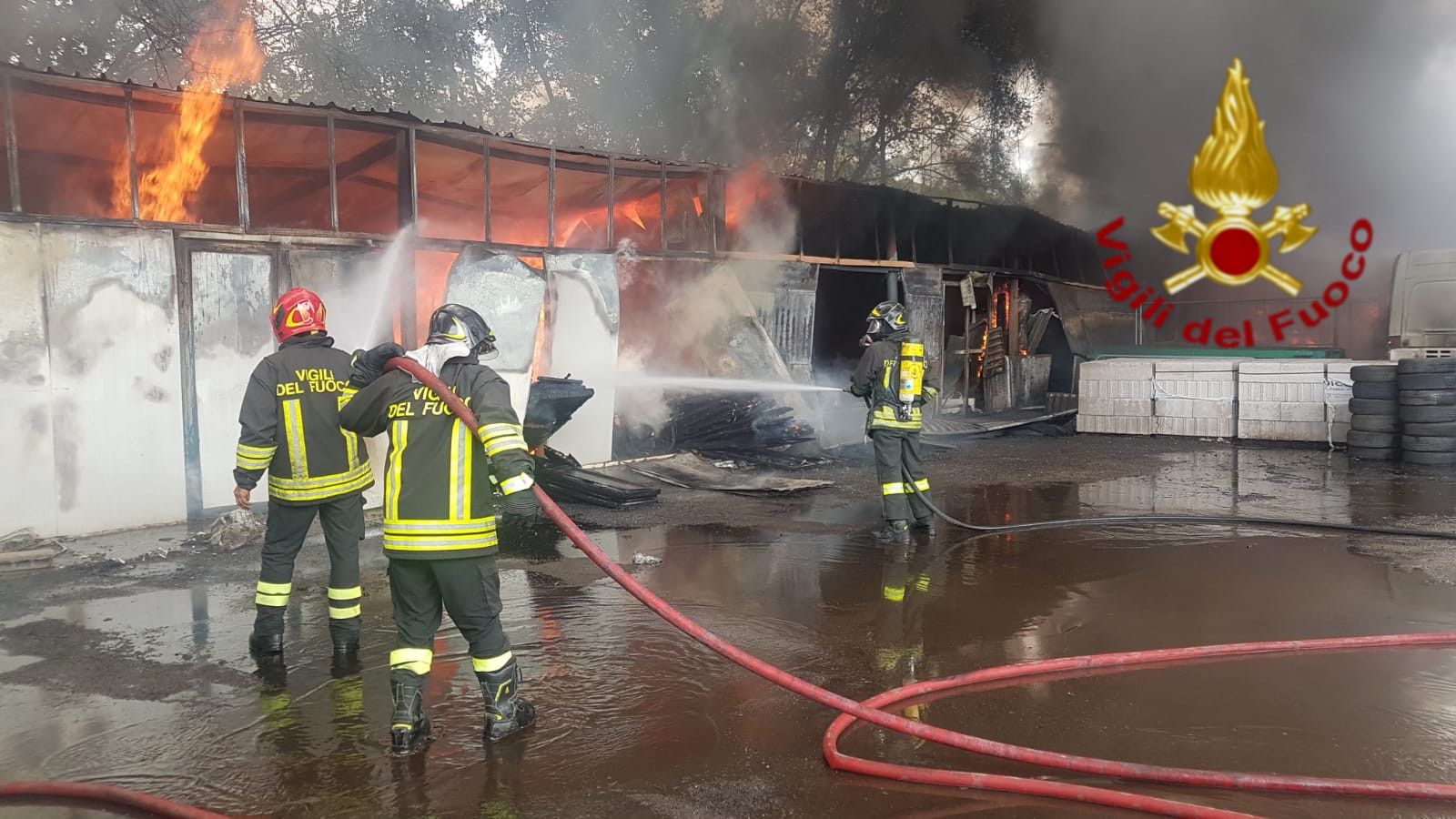 L’allarme è stato inoltrato da una pattuglia di carabinieri che stava transitando nei pressi dell’officina quando si è levata la densa colonna di fumo.