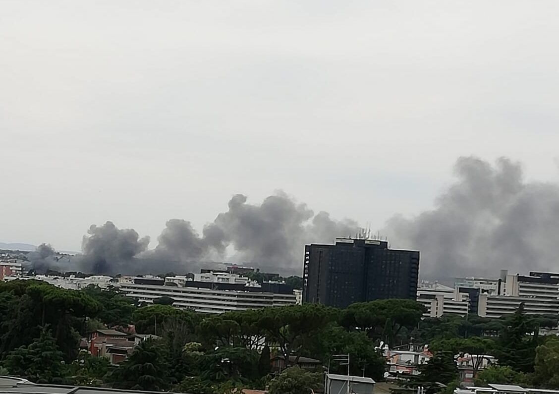 Un grosso incendio è scoppiato oggi verso le 16:30 in un capannone in via dei Cappellacci, a Roma, in zona Magliana.