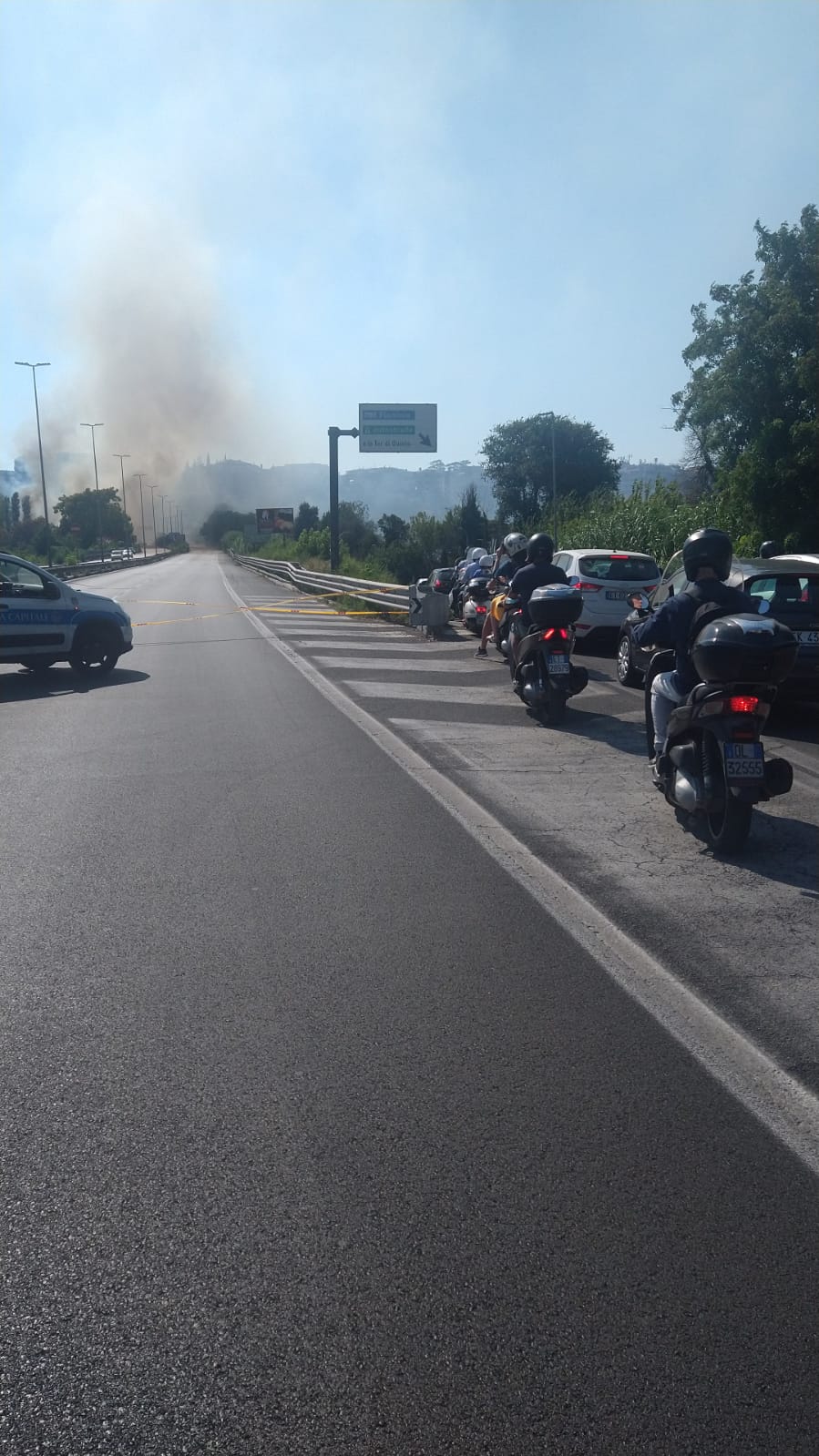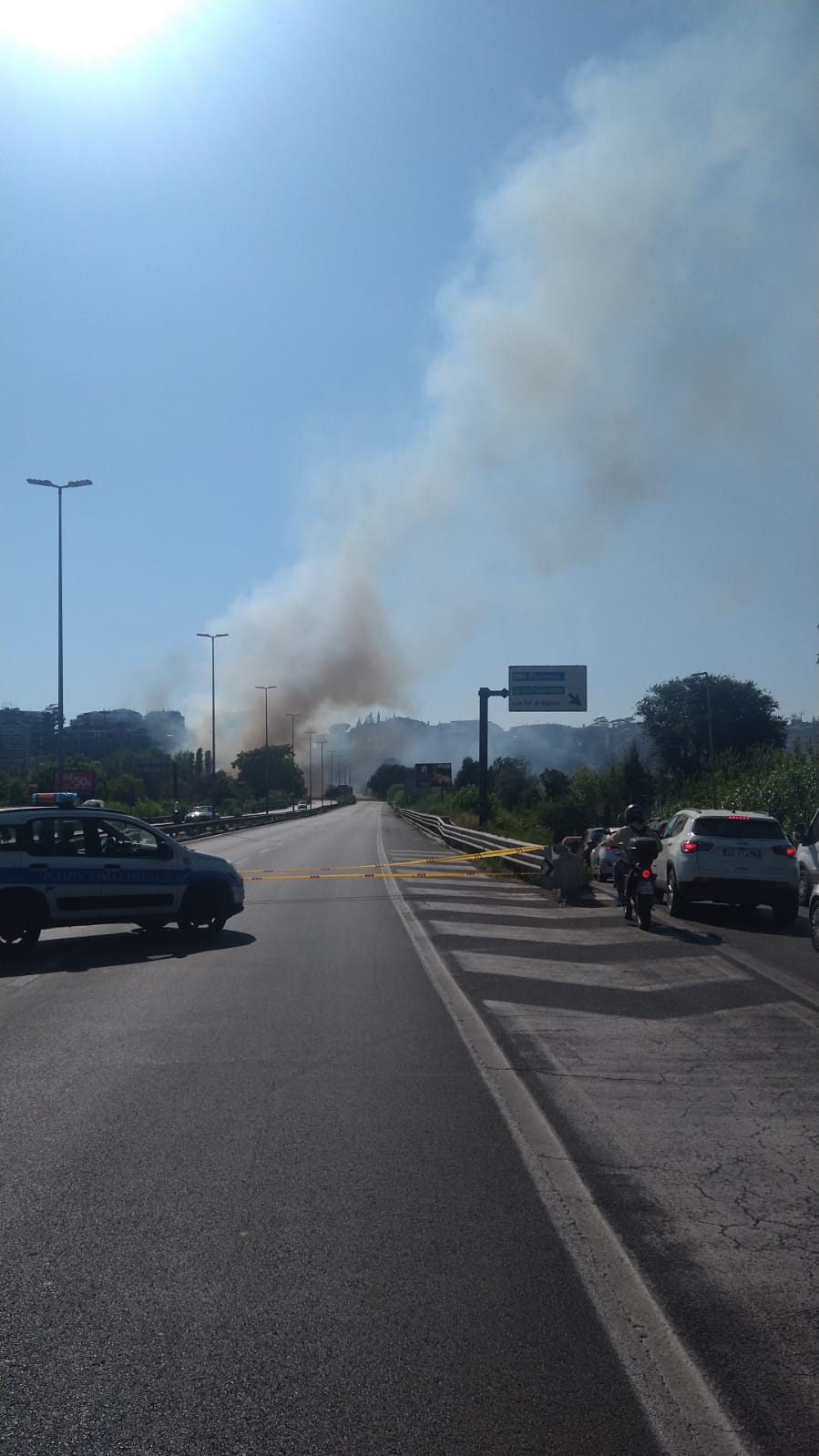 Poco fa l’ultimo rogo, in ordine di tempo. Un grosso incendio sta interessando la Tangenziale. L’Olimpica è invasa dal fumo e la strada è bloccata per un tratto.