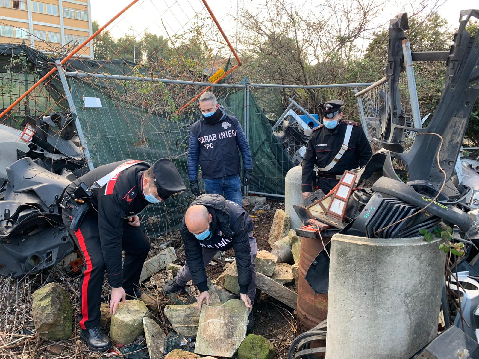 Gli immediati accertamenti, scattati in stretta sinergia tra i Carabinieri della Stazione Roma Montespaccato e il personale specializzato dell’Arma dei Carabinieri che svolge attività di prevenzione e repressione a tutela del Patrimonio Culturale dello Stato, coordinati dalla Procura della Repubblica di Roma, hanno consentito di risalire al luogo di provenienza dei reperti: l’attività di demolizione auto che si era ingrandita, andando ad occupare abusivamente un terreno adiacente, di proprietà del Comune di Roma, utilizzato anche come deposito di reperti. Nel corso di una perquisizione, scattata nei giorni scorsi, in esecuzione di un decreto emesso dalla Procura della Repubblica di Roma, è emerso lo sconfinamento dell’attività nel terreno del comune di Roma, in cui erano presenti circa 300 frammenti di terracotta di varie dimensioni, della stessa tipologia di quelli recuperati a novembre 2020.