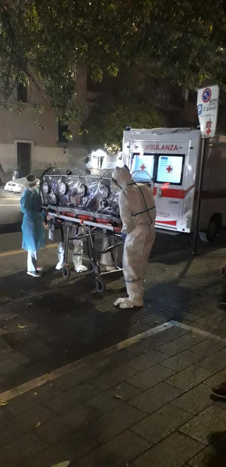Hanno fatto il giro del web in pochissimo tempo le foto fatte da un uomo, Claudio D.F., e postate sul suo profilo Facebook, che mostrano la sequenza del trasferimento di un paziente, completamente isolato come richiede la procedura in caso di malattia infettiva altamente trasmissibile, dall’ospedale Vannini verso lo Spallanzani.