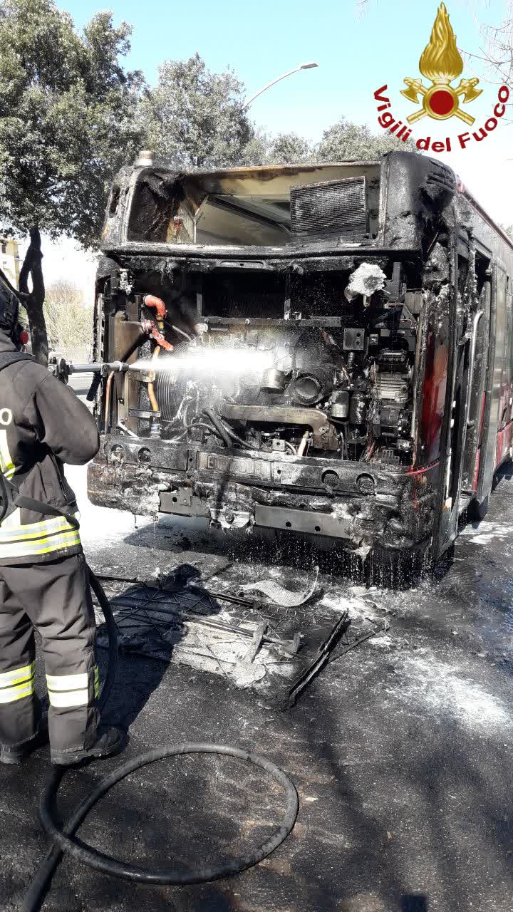 Paura questa mattina in viale Marconi, dove intorno alle ore 10:30 un bus della linea 791 Atac è improvvisamente andato a fuoco mentre percorreva la strada in direzione centro città. L’autista, accorgendosi delle fiamme partite dal vano motore nella parte posteriore del mezzo, ha fatto scendere i passeggeri e chiamato i vigili del fuoco. La sala Operativa del Comando di Roma ha inviato una Squadra VVF con l’ausilio di un’autobotte. Sul posto anche gli agendi della polizia locale di Roma Capitale Gruppo Tintoretto che hanno temporaneamente chiuso Viale Guglielmo Marconi deviando il traffico in direzione centro su via Casamari.