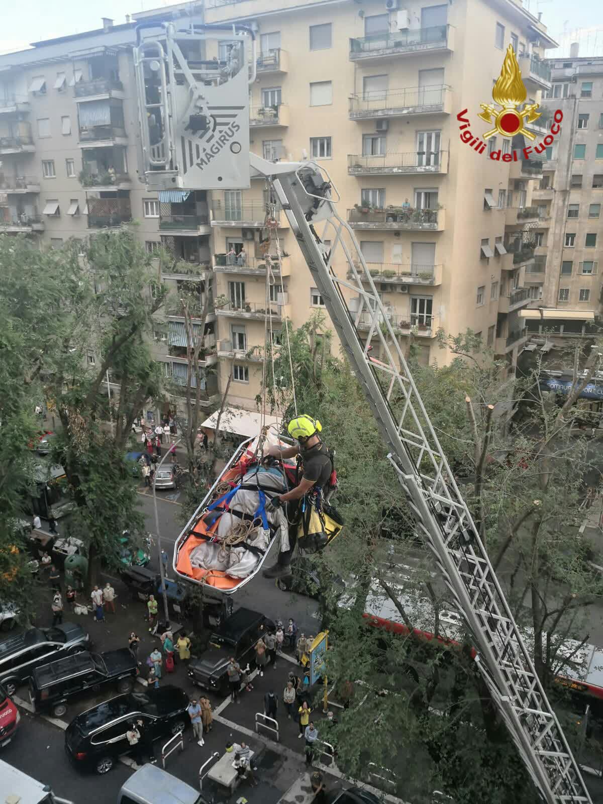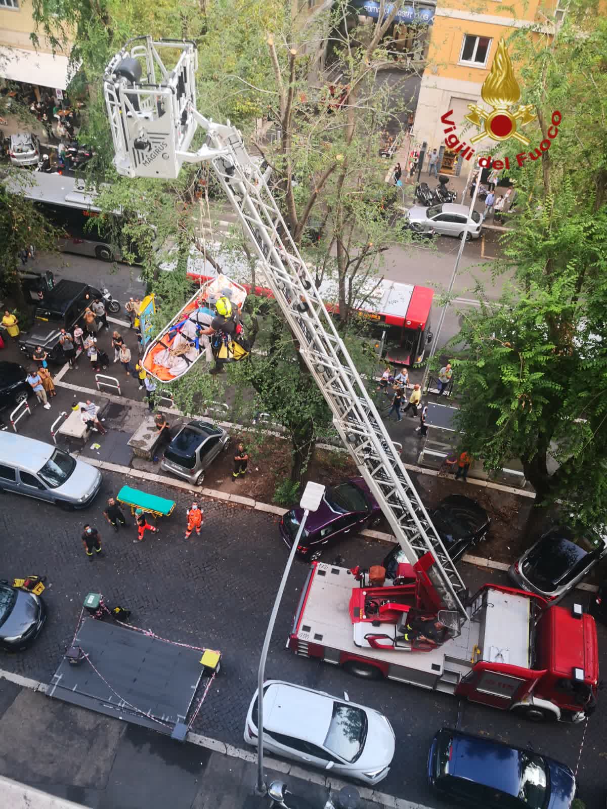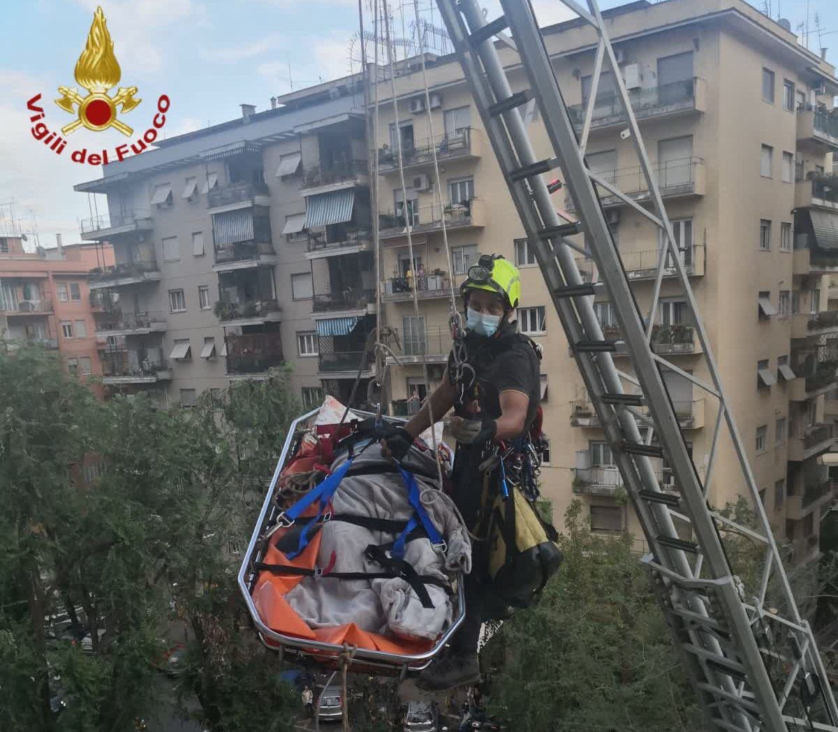 Roma, pesa troppo per essere trasportata in barella: donna viene calata dal 5° piano con l’autoscala dei vigili del fuoco