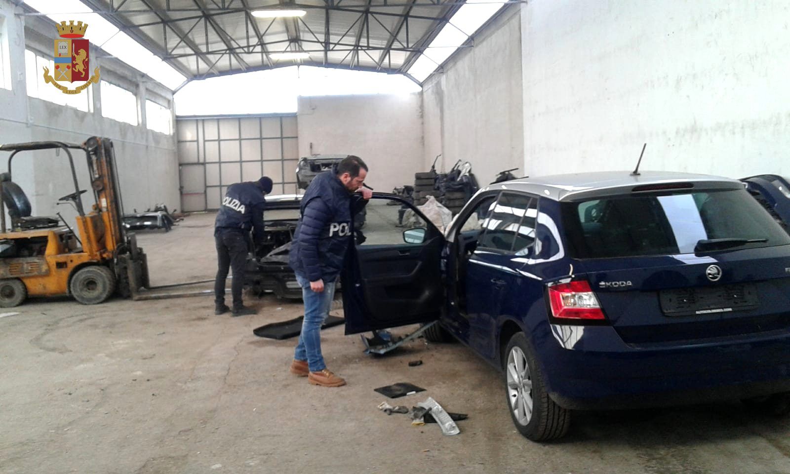 Sono sei in totale i veicoli rinvenuti e sequestrati oltre a tutta l’attrezzattura per lo smontaggio, un muletto per la movimentazione delle parti pesanti delle auto nonché due Jammer utilizzati per il disturbo di radio frequenze e segnali GPS.